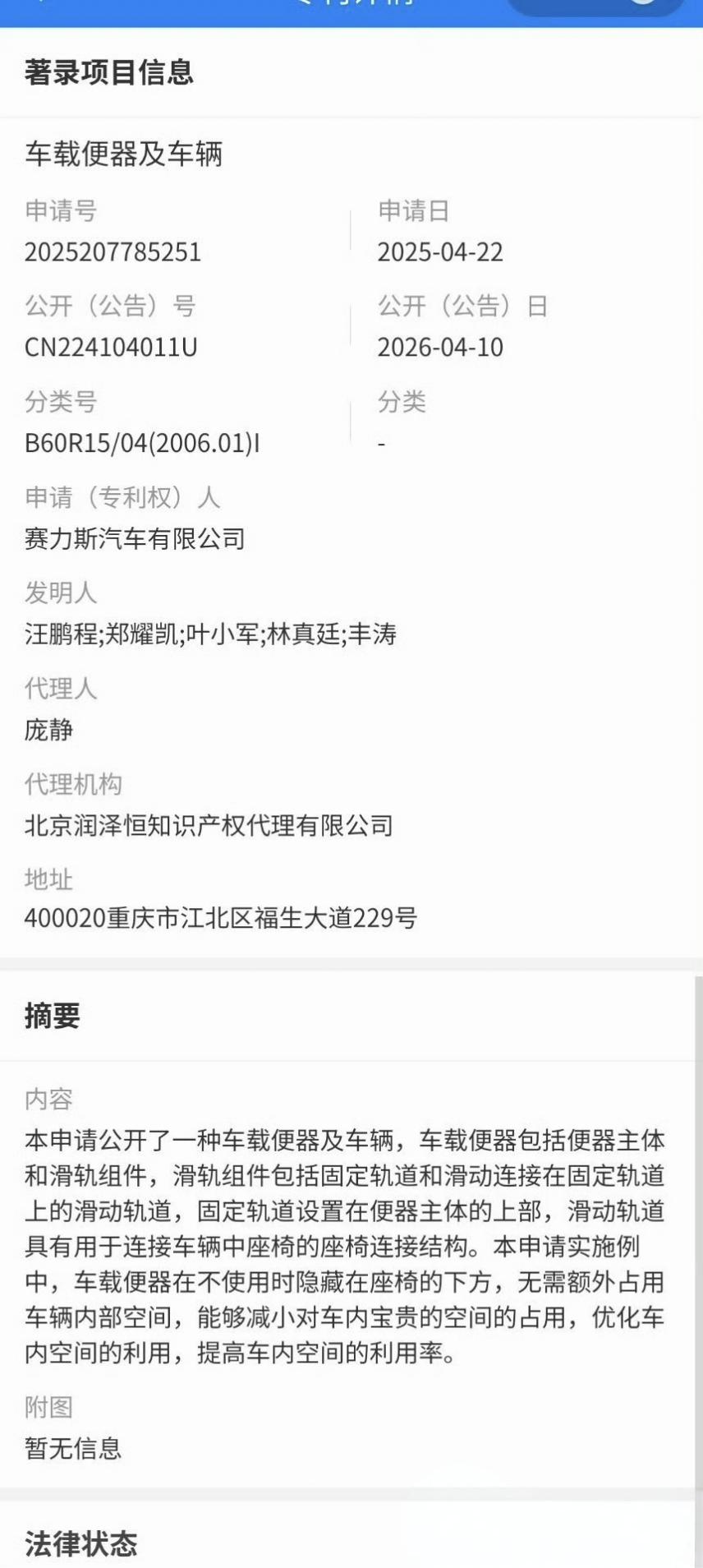 网上看了一下赛力斯申请的车载便器的专利 没想到竟然是真的 车载坐便器,你觉得有必