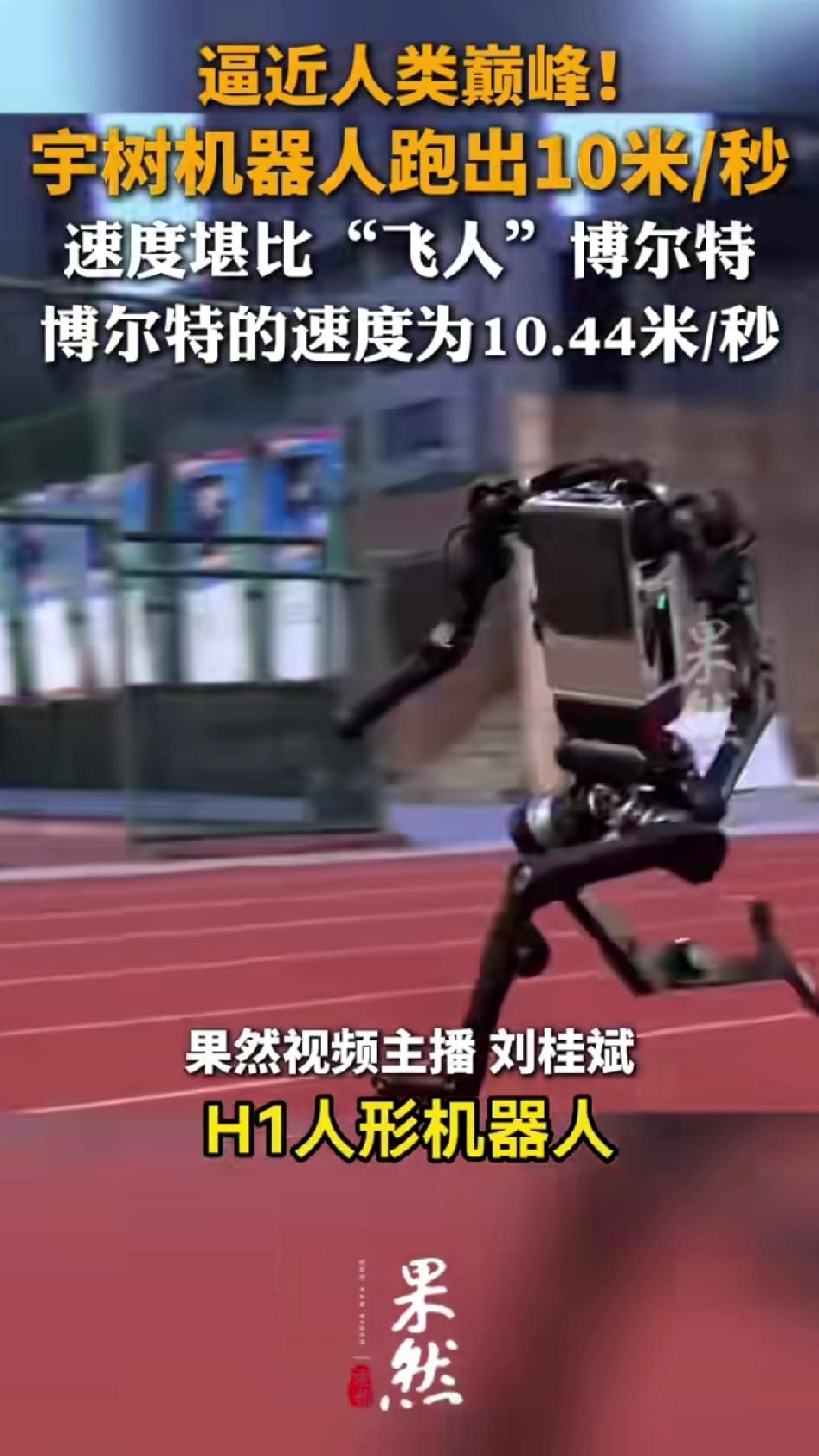 机器人跑得快有没有用???宇树科技H1人形机器人,百米实测峰值速度达到10米每秒,相当于36公里每小时,刷新了人形机器人世界纪录,无限逼近博尔特的10.44米每秒!36公里每小时,这是人类顶级短跑运动员的冲刺水平。