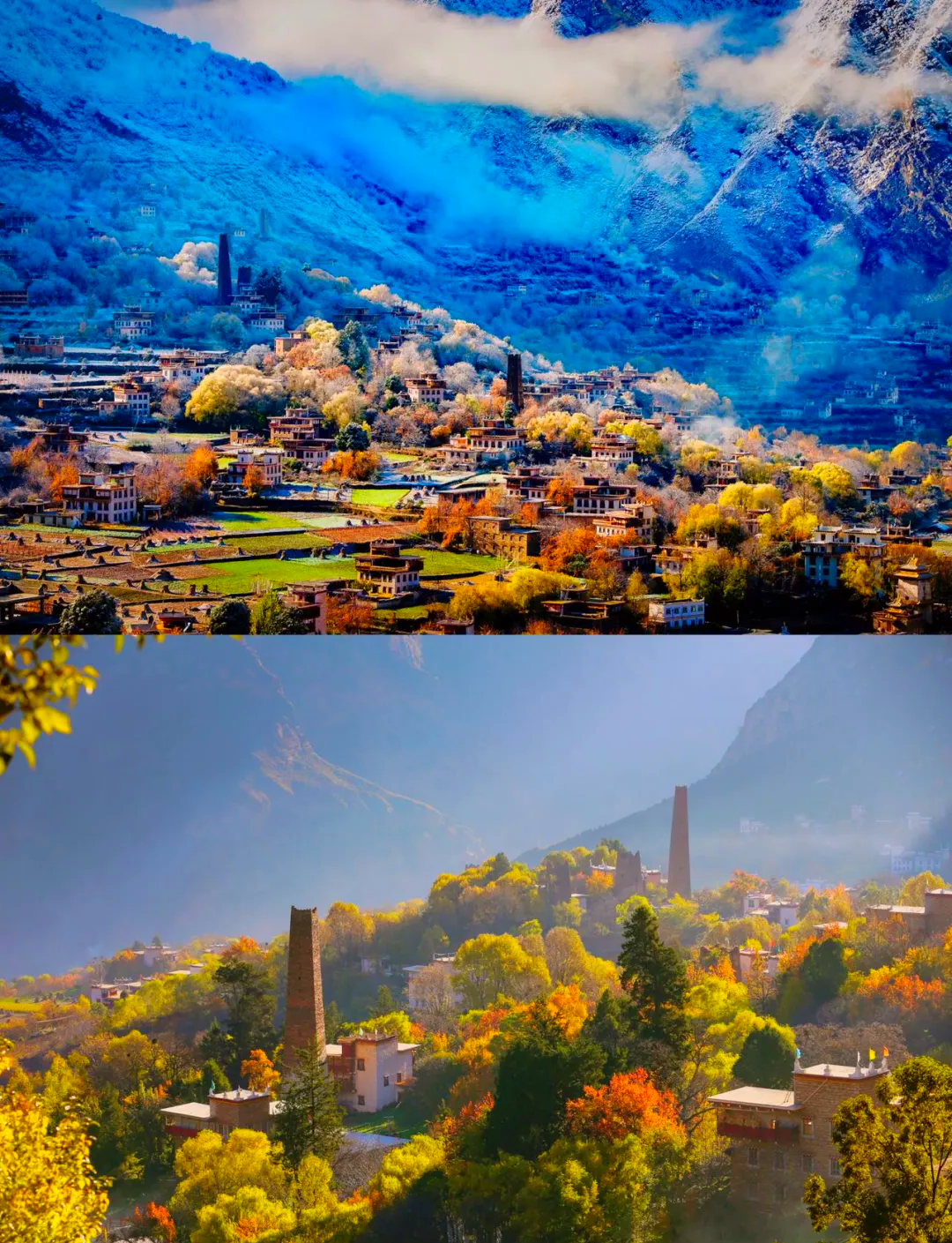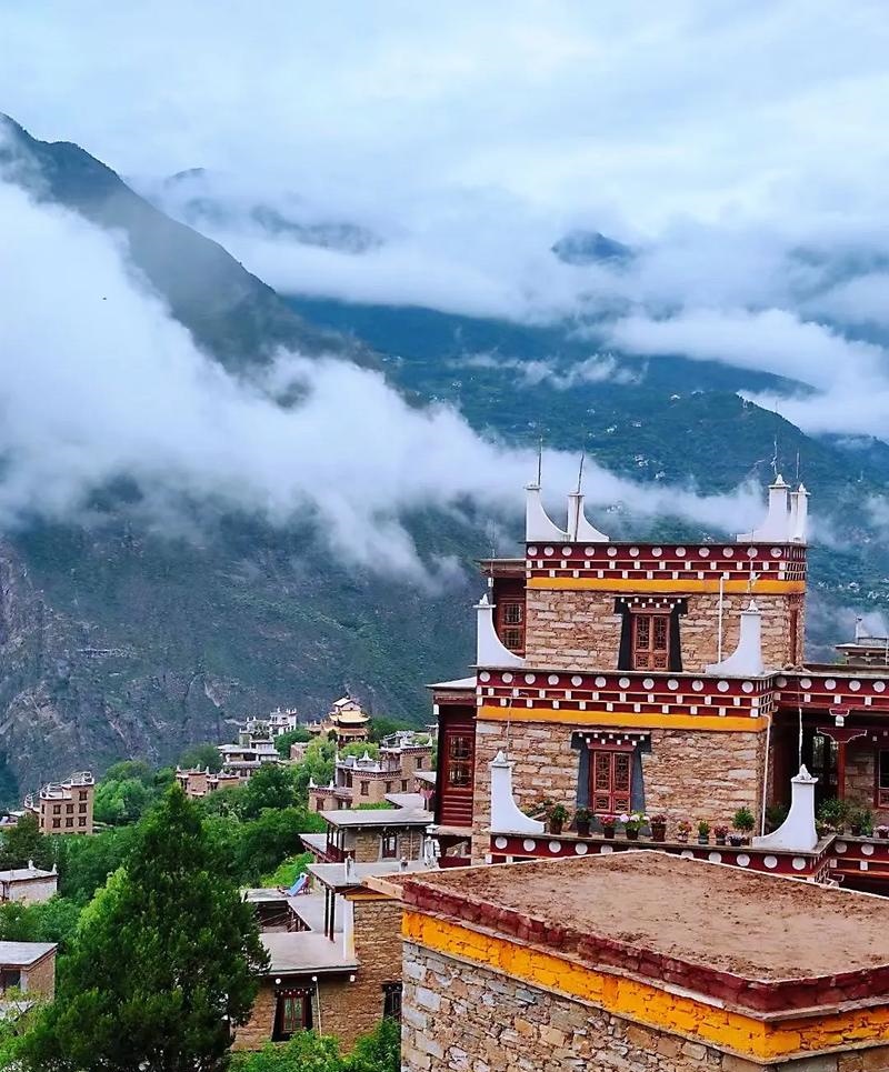 1️⃣.甲居藏寨,中国最美乡村之首!红白藏房依山,雪山美景太治愈了。