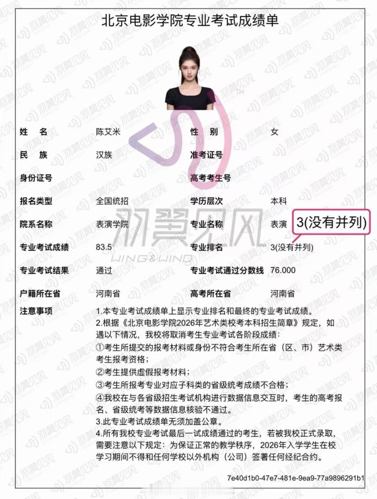 北电艺考成绩出啦!!艾米全国第三艾米北电成绩全国第三