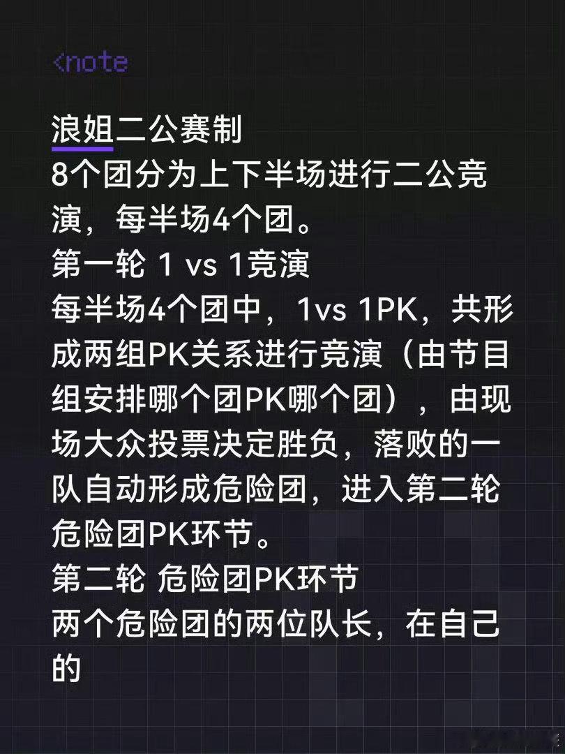 曝浪姐二公赛制浪姐7二公赛制🈶,网传规则采用“团队1v1 PK+危险团拉票淘汰