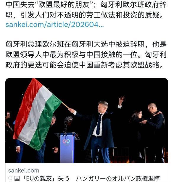 转过天来的4月13日,日本《产经新闻》就迫不及待跳出来敲锣打鼓,甩出一句酸溜溜的话,说欧尔班这一走,中国可是失去了在欧盟内部最好的朋友。
