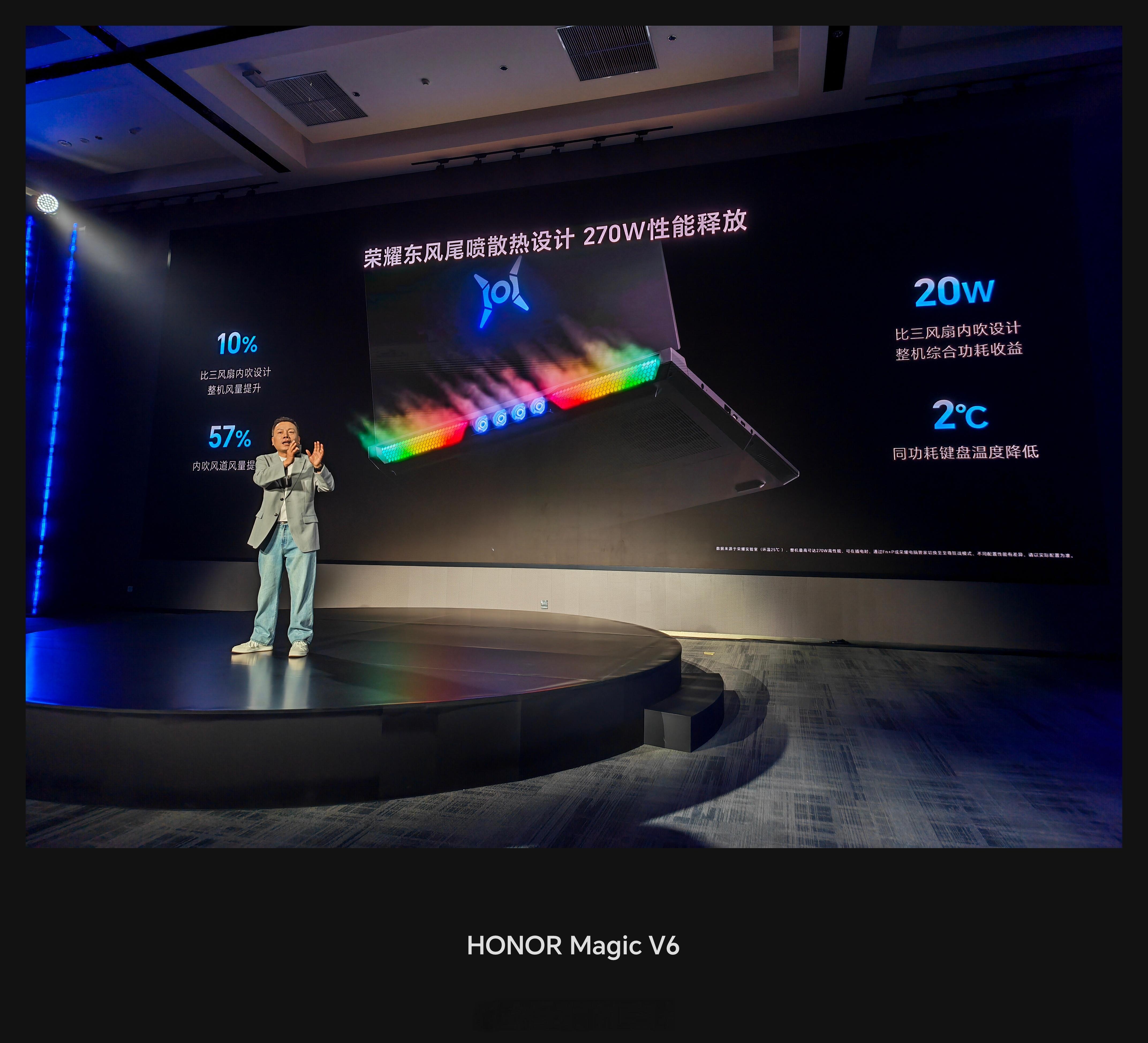 荣耀 WIN 系列游戏本,分成 H9 和 H7 两个型号,顶配最高 270W 性能释放,首发荣耀东风尾喷散热引擎,将轴流风扇小型化,内吹风道风量提升 57%,比三风扇内吹设计整机风量提升 10%、比三风扇内吹设计整机综合功耗收益省 20W。
