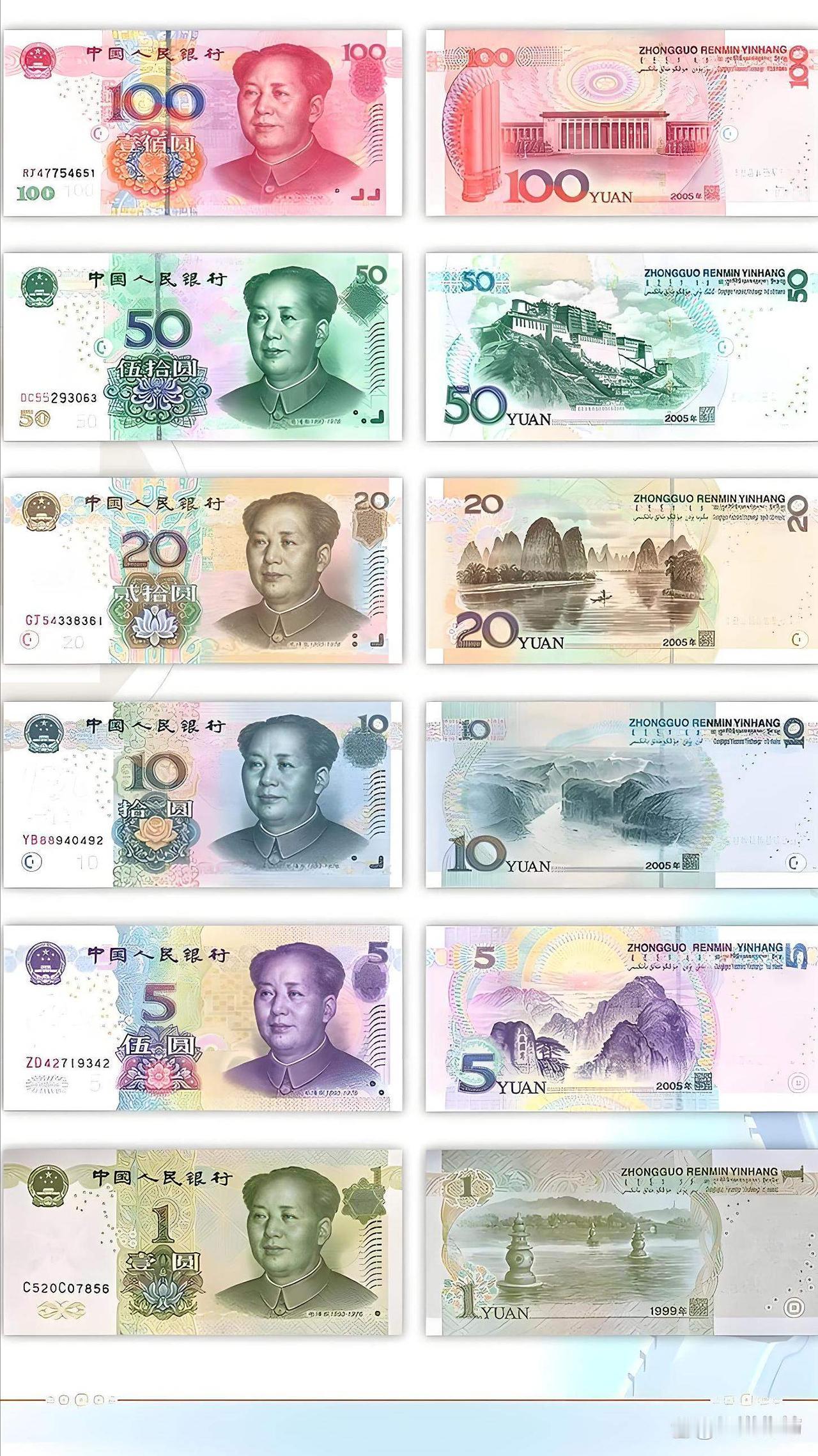 20元纸币的设计灵感则源自夏商周青铜文化,背面纹饰是青铜饕餮纹,汉字下方的荷花谐音“莲荷”,从而寓意和平团结,背面桂林山水更是尽显“甲天下”的秀丽。还有10元纸币布满青花瓷缠枝纹,枝叶缠绕寓意生生不息,汉字下方的月季被又誉为花中皇后,背面还有长江三峡夔门雄伟险峻,印证着杜甫诗句中的壮阔景象。