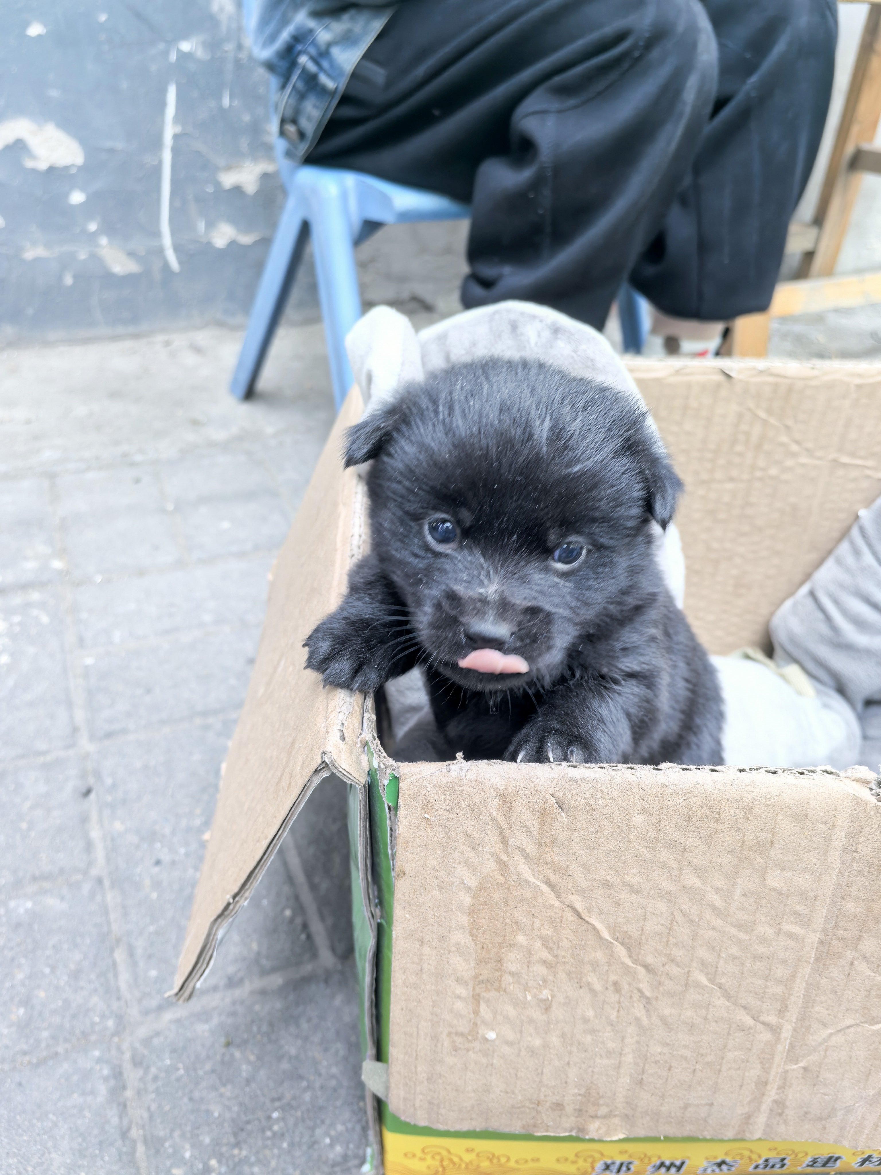 接土豆的时候遇到的小奶狗,一只在箱子里喝奶,一只哼唧唧在外面找人撒娇~
