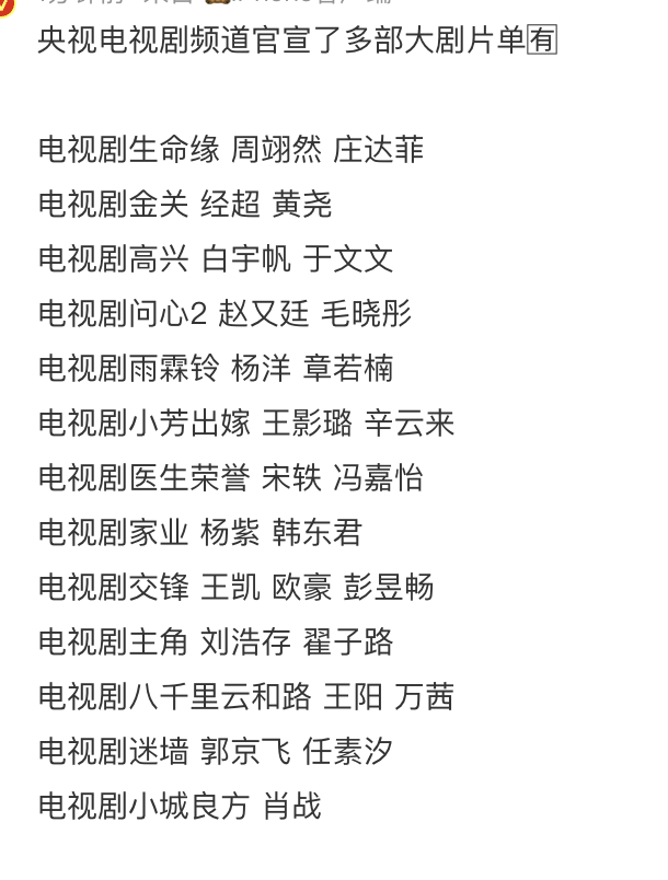 央视电视剧公布的大剧片单,实话说有可看的吗?