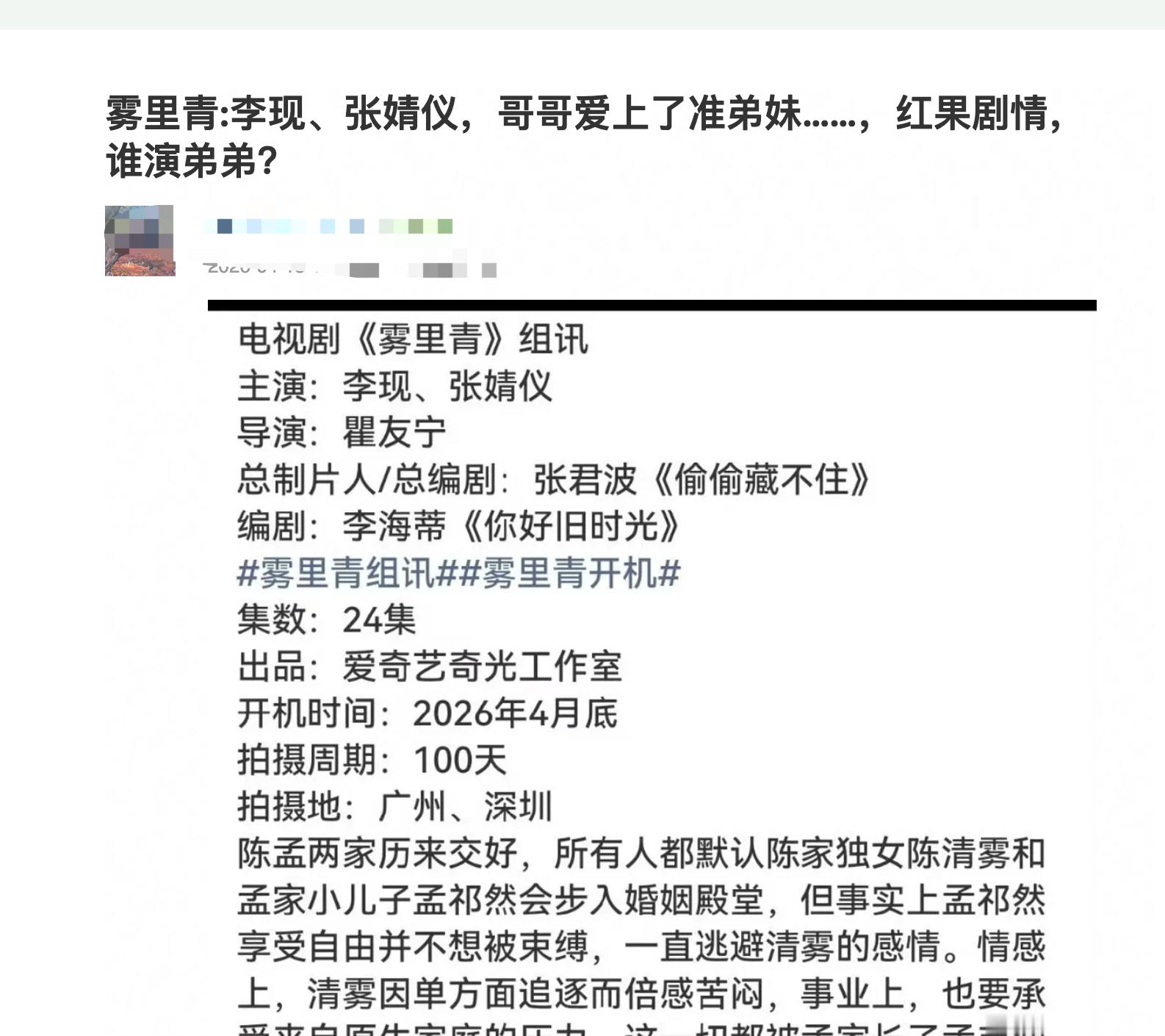 李现张婧仪新剧《雾里青》剧情是哥哥爱上了弟妹,那么问题来了谁来演弟弟?