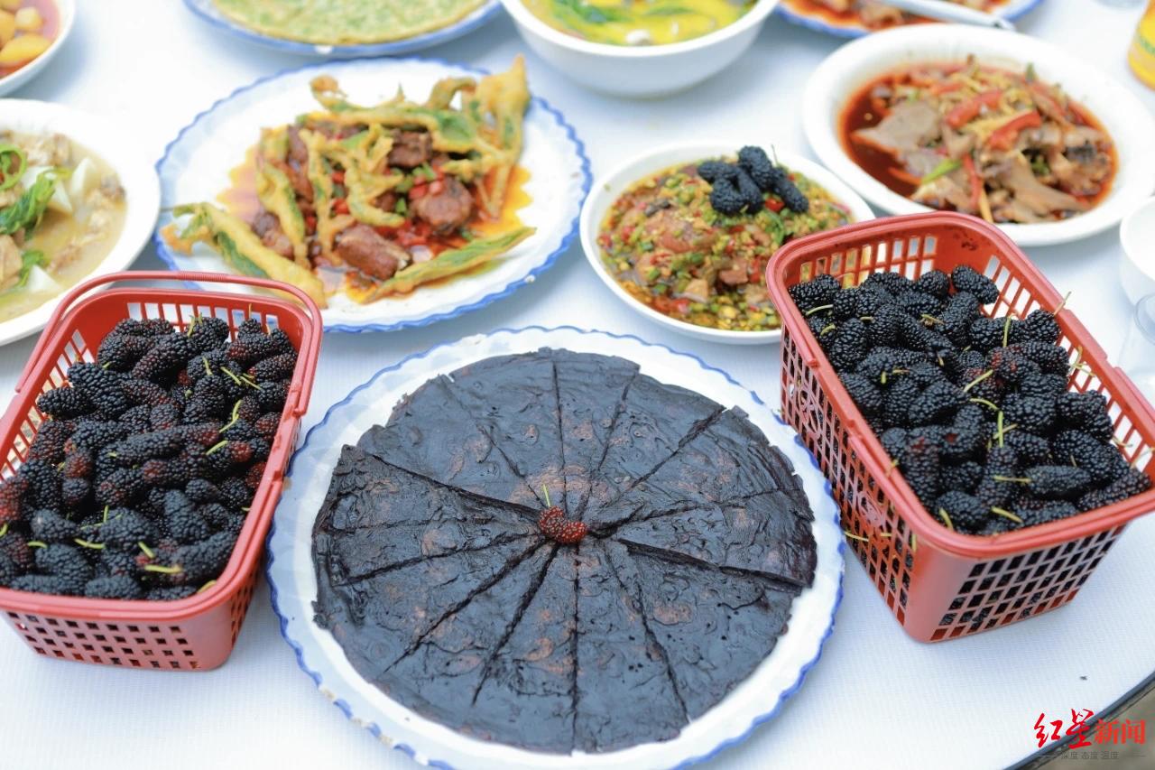 除采摘外,江源镇还推出小龙虾垂钓等多元体验项目,并设有桑叶炒蛋、桑葚回锅肉等“全桑宴”美食及桑葚酒、果干等伴手礼,为游客提供动静结合的一站式乡村休闲体验。