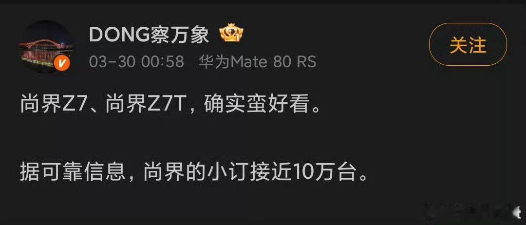 尚界Z7系列官方预定数据突破6万台并非网传接近10万台新能源汽车