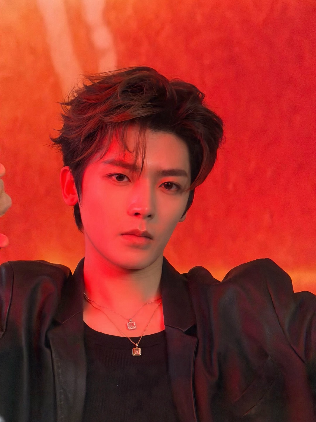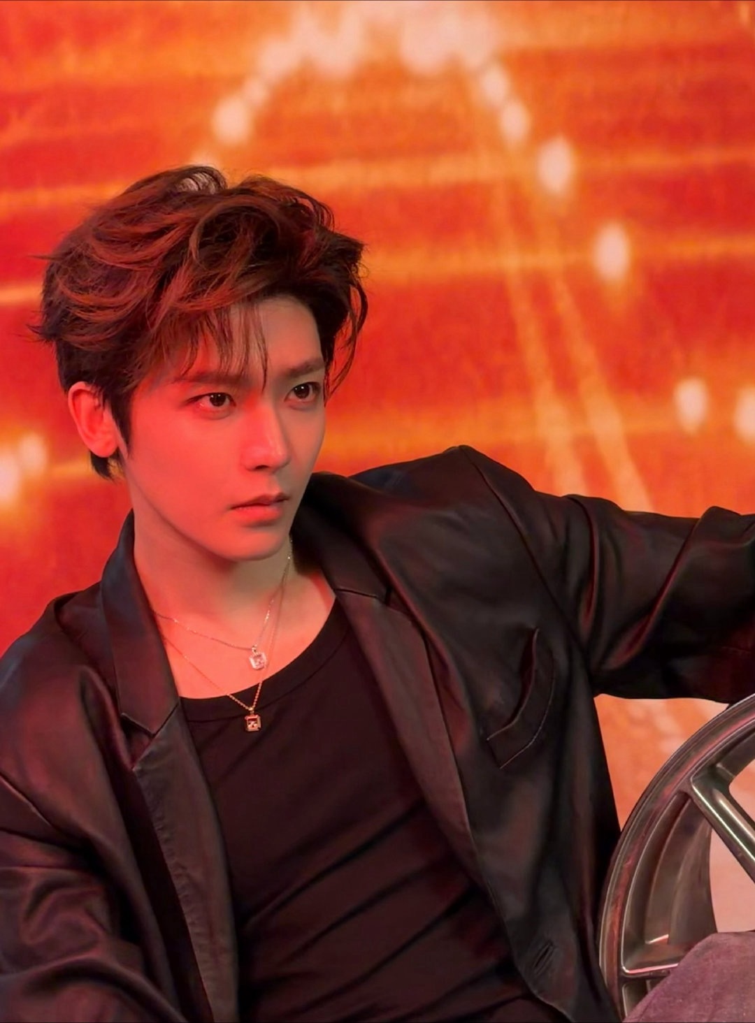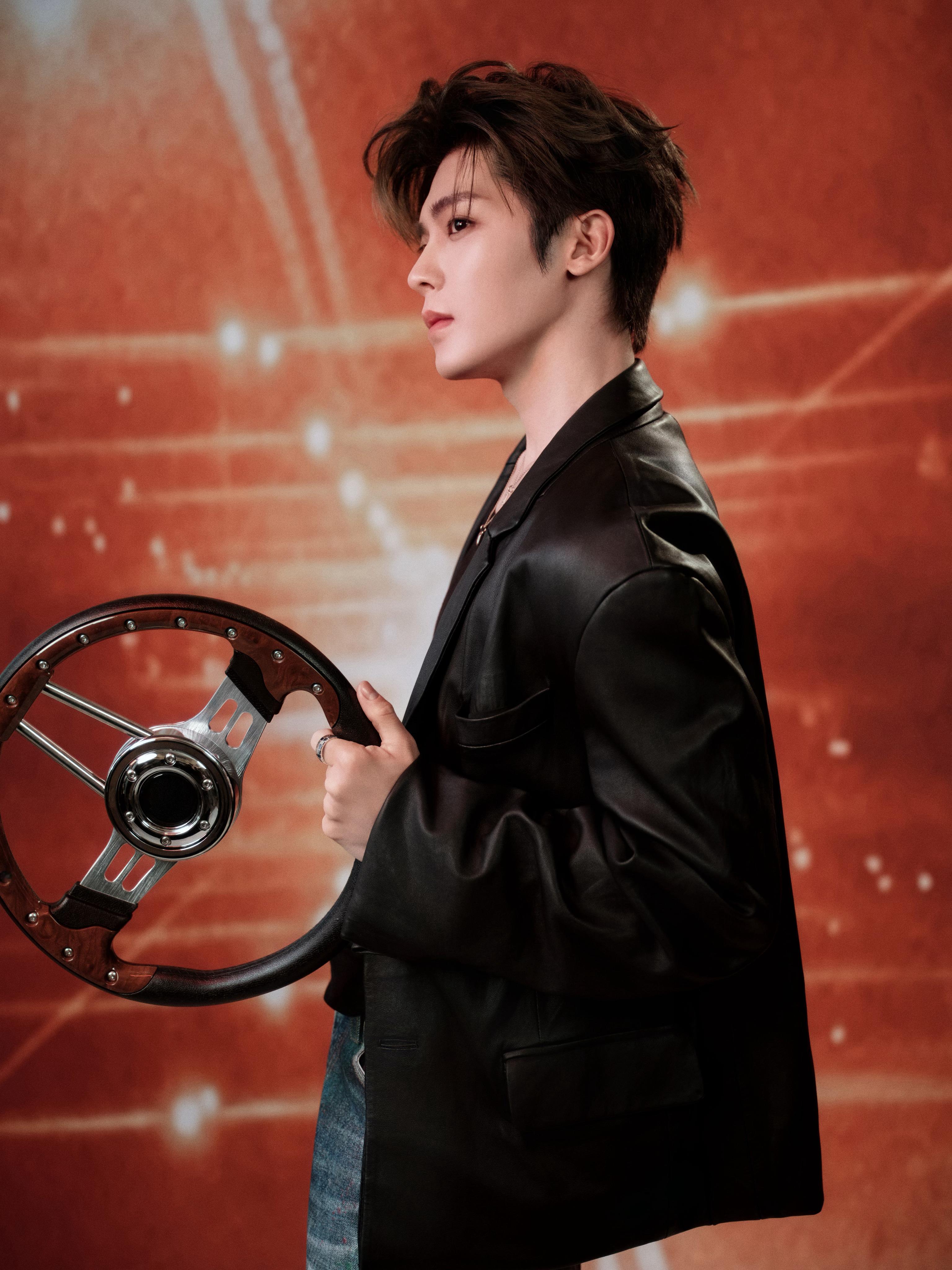 侯明昊 × 欧拉汽车活动造型 Look,利落皮衣搭配牛仔与皮靴,Chopard 萧邦珠宝腕表点缀,先锋摩登,气场全开,热烈引擎点燃夜晚精彩~🛞❤️🔥