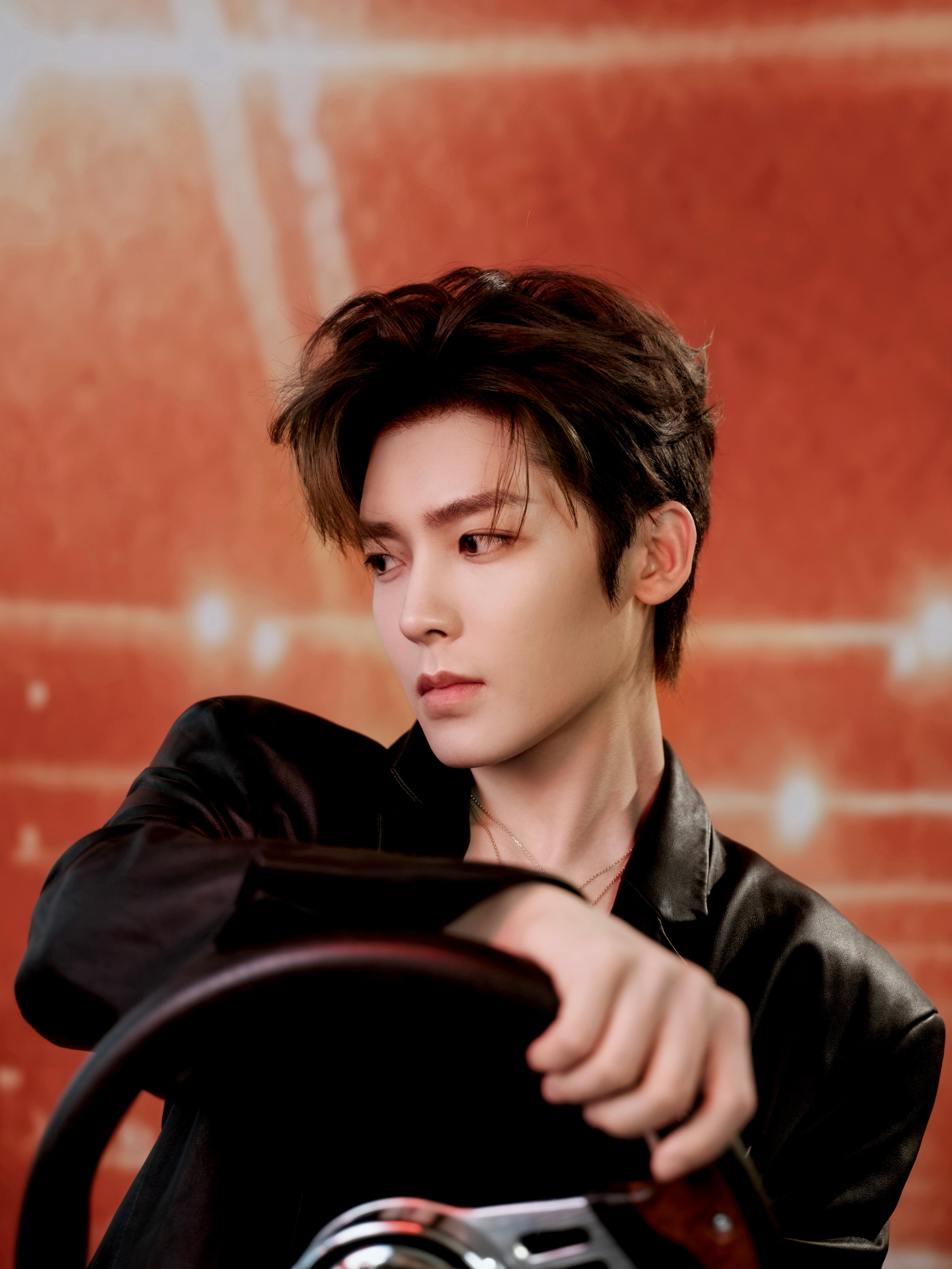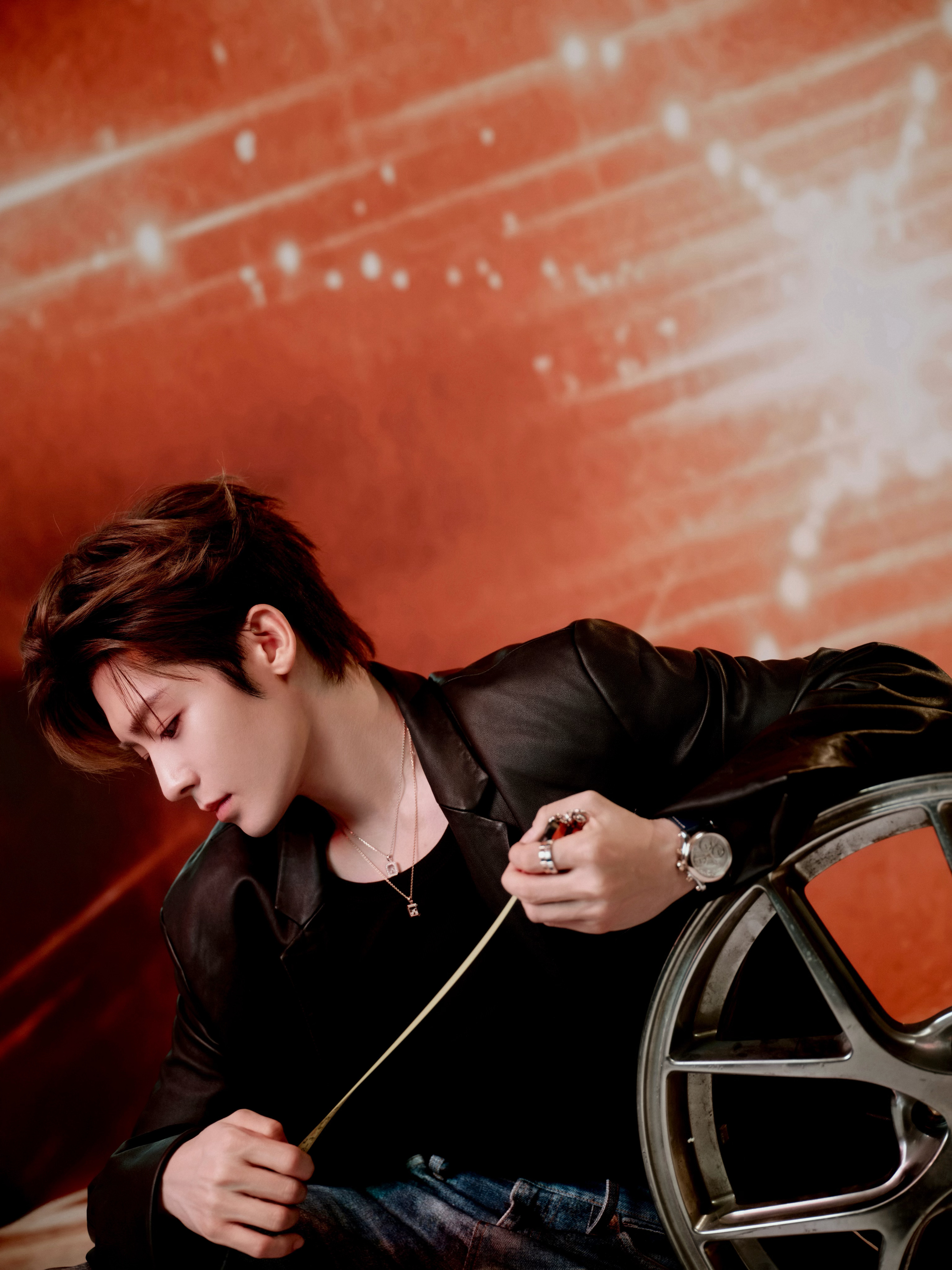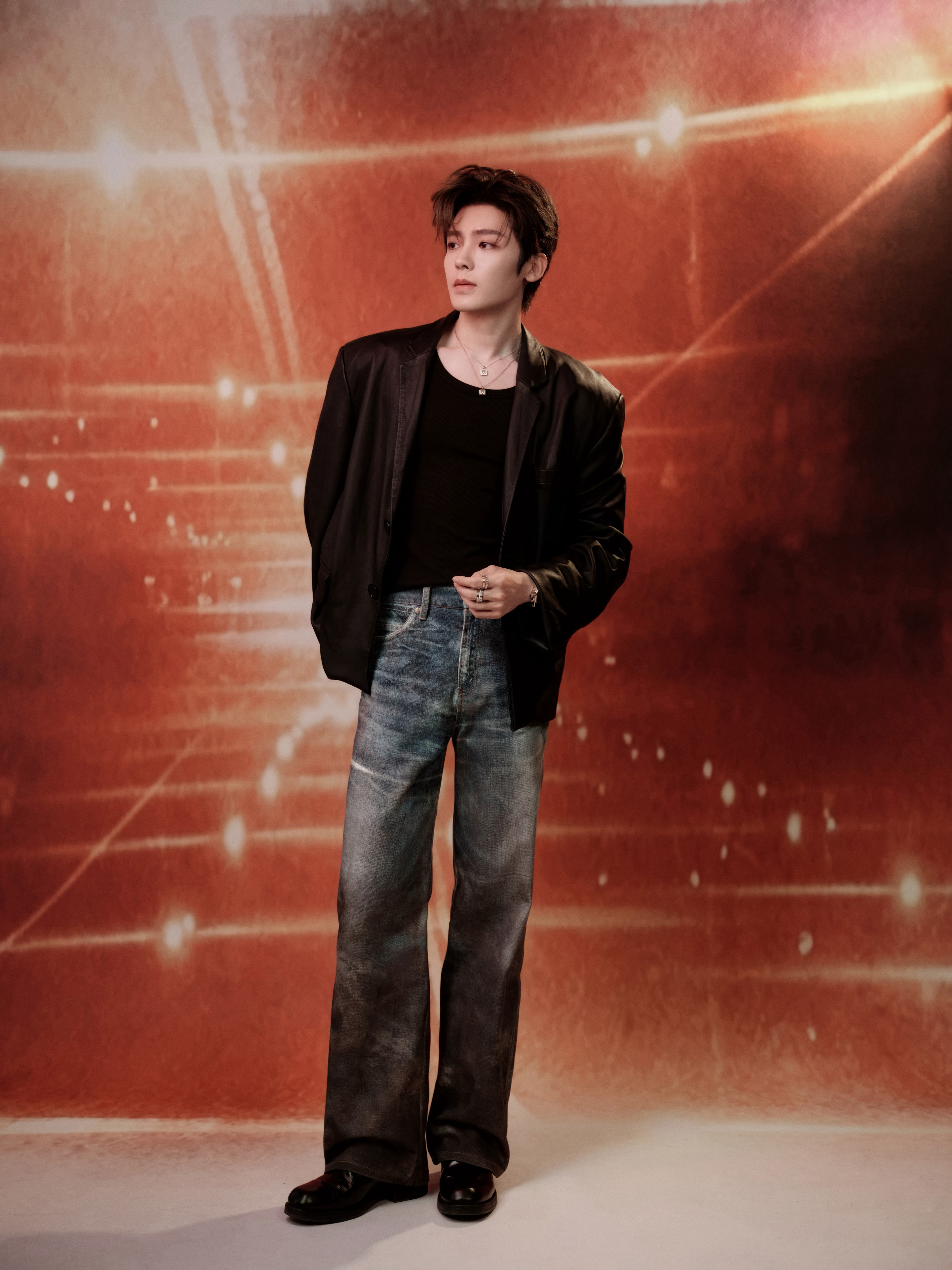 侯明昊 × 欧拉汽车活动造型 Look,利落皮衣搭配牛仔与皮靴,Chopard