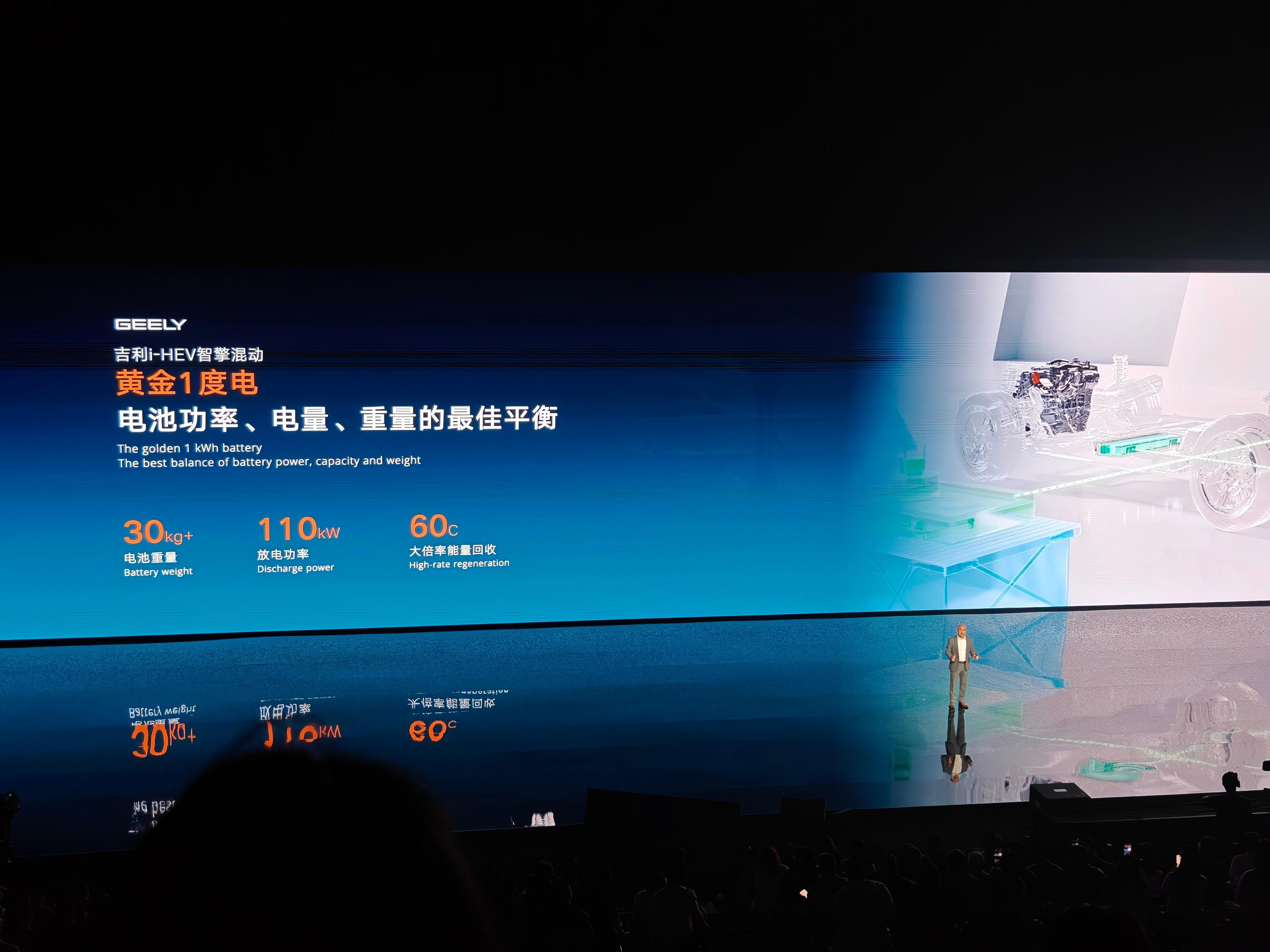 混动系统的高倍率电池,连带整套的BMS和外壳,只有1kWh但是重量达到30kg已经是值得发布会上屏的水准。放电功率是110kW,但是主驱动电机的功率是230kW。需要发电用电之间精妙的平衡。新能源大牛说