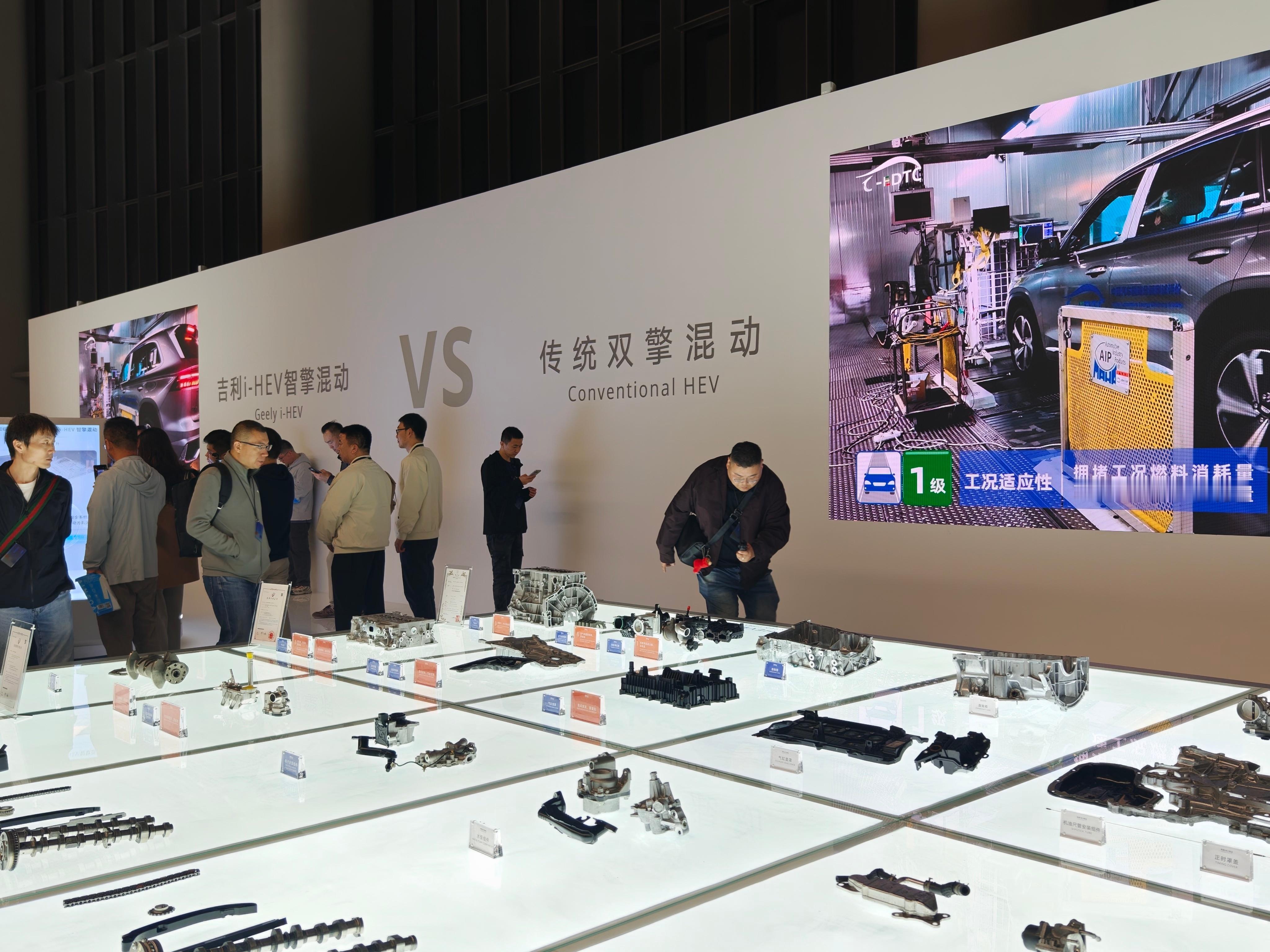 他们给出的更务实的解决方案是:WLTC百公里3L级油耗,发动机热效率达48.41%,搭配AI云动力系统,可根据路况实时智能分配油电,进一步优化能耗。发布会现场还清晰展示了吉利发动机多代迭代历程,从一代到四代,架构优化、热效率突破到动力全面升级,一目了然。从气门,活塞到EGR组件,硬核地让我差点以为回到了大学时候的发动机拆创课。这套技术还历经了全球五大洲极限环境验证,全场景适应性强,核心技术还可与插混、纯电通用,是燃油车向纯电过渡的优质选择,也让中国混动在全球市场更具竞争力。新能源大牛说中国混动油耗打破世界纪录中国有哪些技术被全球抢着要