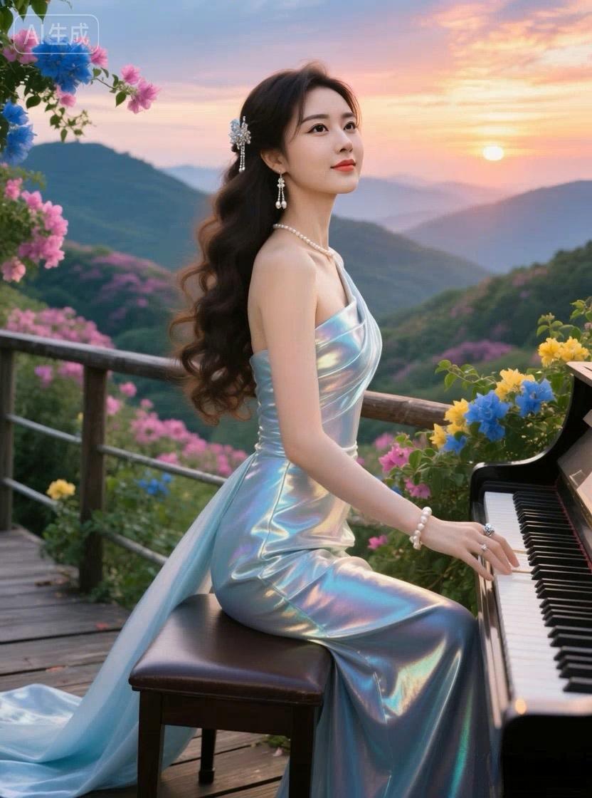 风吹岭静妹弹琴,