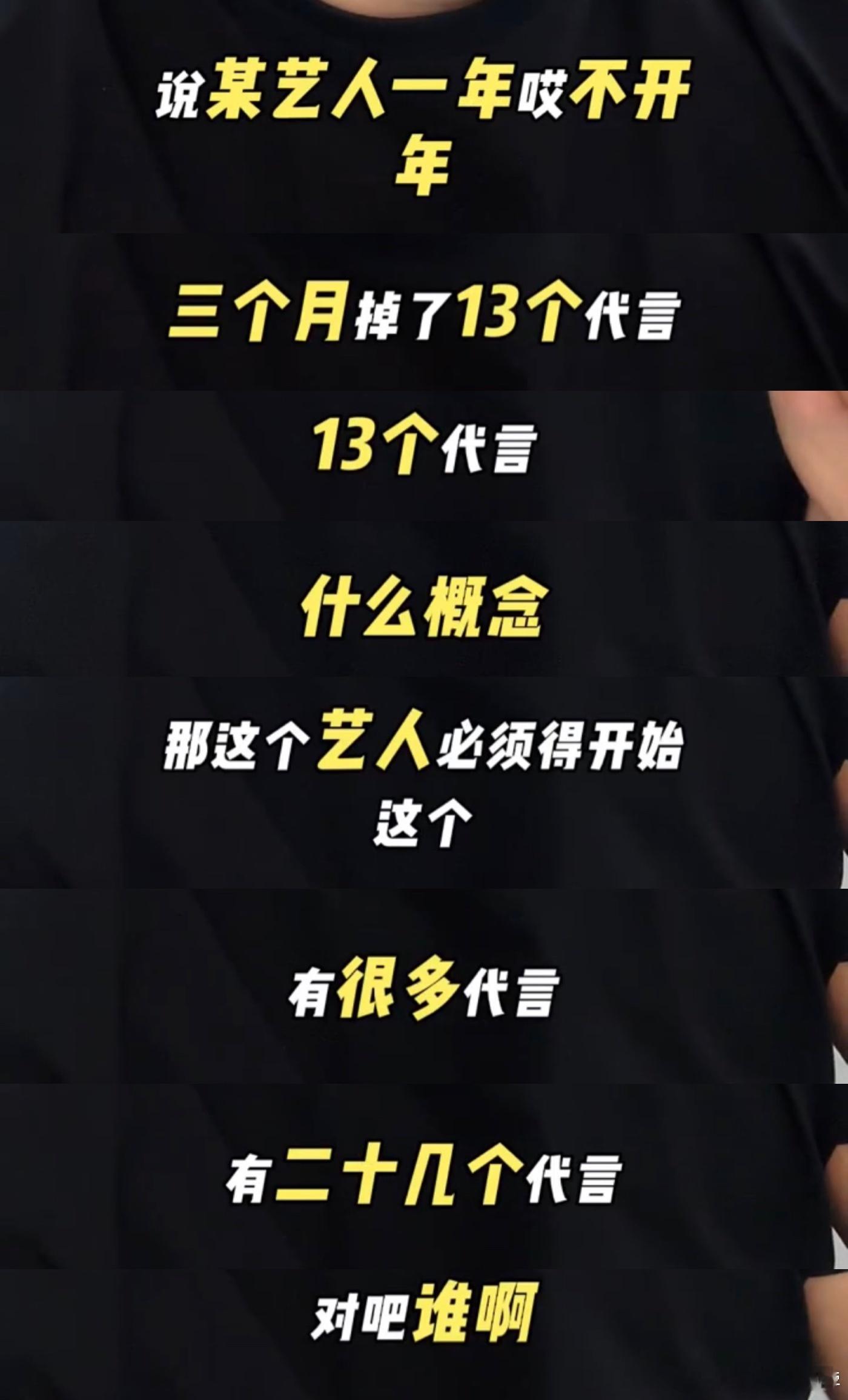曝某艺人开年掉了13个代言 说是有艺人开年就掉了13个代言,这什么概念,掉的有点夸张