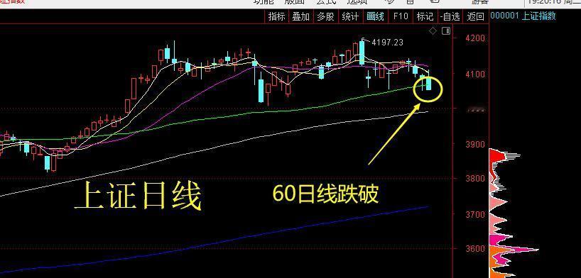 看日线,60日线也被跌破,昨天跌破拉回去了,今天是冲高回落跌破了60日线,