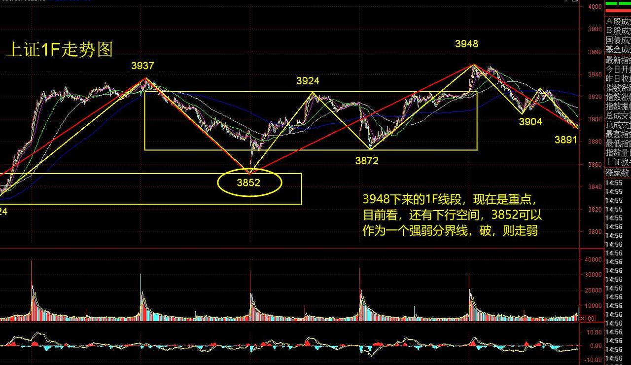 根本无法判断。而最为继续调整的强弱分界线,首先是3872,然后是3852,