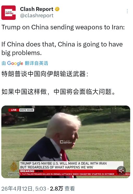 4月12日,特朗普在接受采访时放了狠话:如果中方敢向伊朗输送武器,那中方将会面临“大问题”。这话听着杀气腾腾,其实熟悉他路数的人都看得出来,这又是典型的一边给自己找台阶下,一边伸手找下家的“甩锅”戏码。
