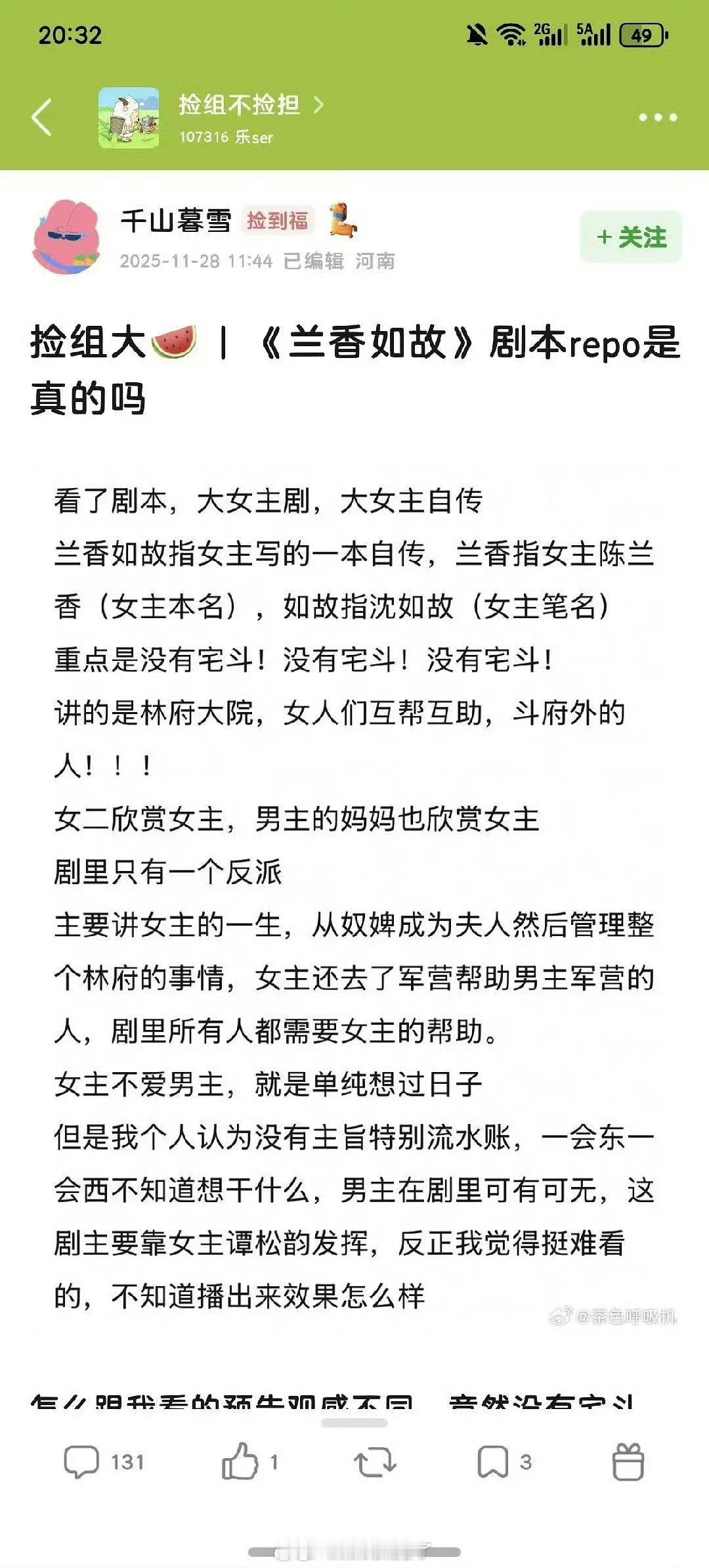 《兰香如故》剧本repo,危!没有宅斗,反派只有一个,很容易流水账吧?