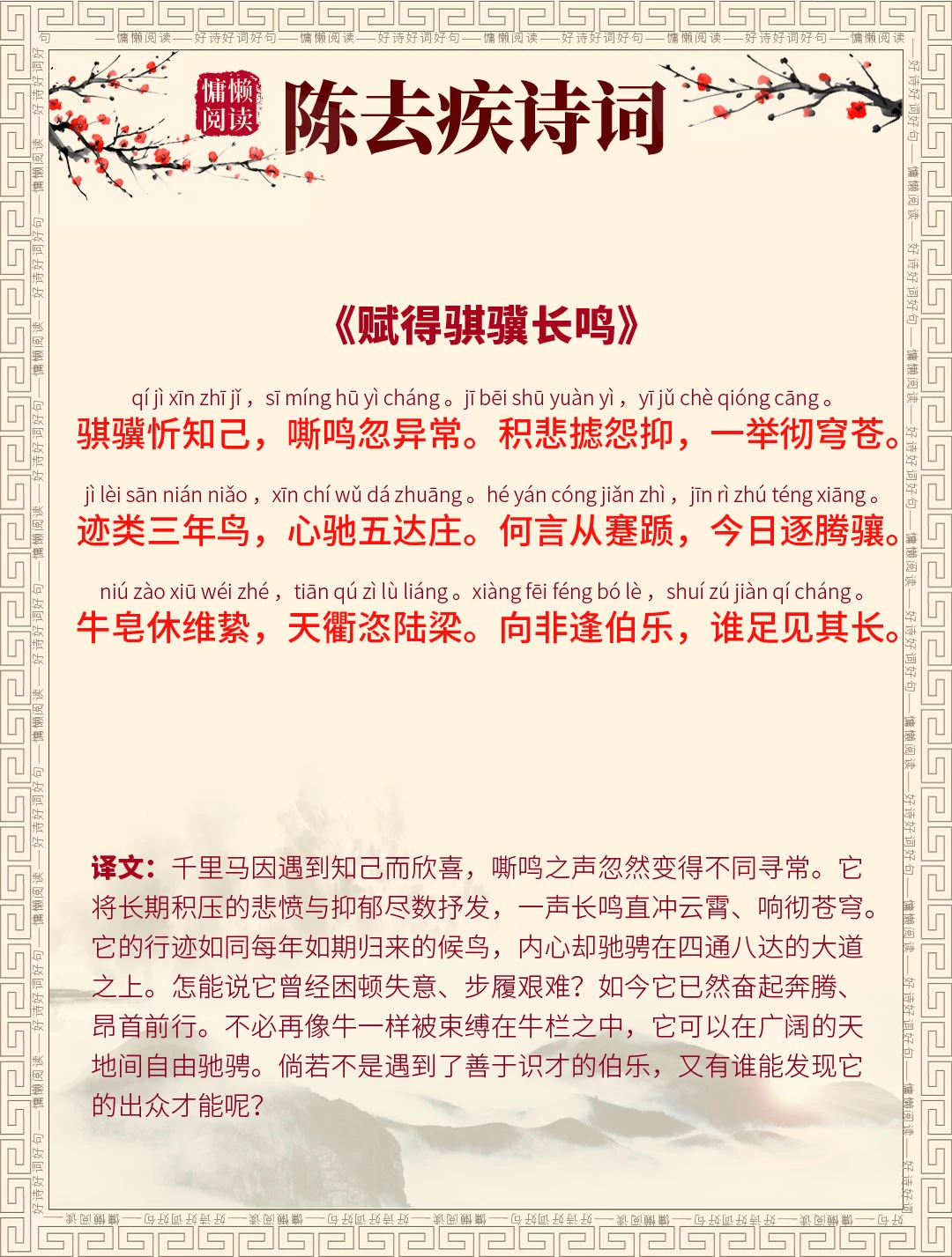 今天,我们整理了陈去疾的全部13首传世诗作,每首均附上精准拼音和通俗译文,无需古文基础,也能轻松读懂其中的千年诗意,一起走进这位被忽略的唐代才子的文学世界。