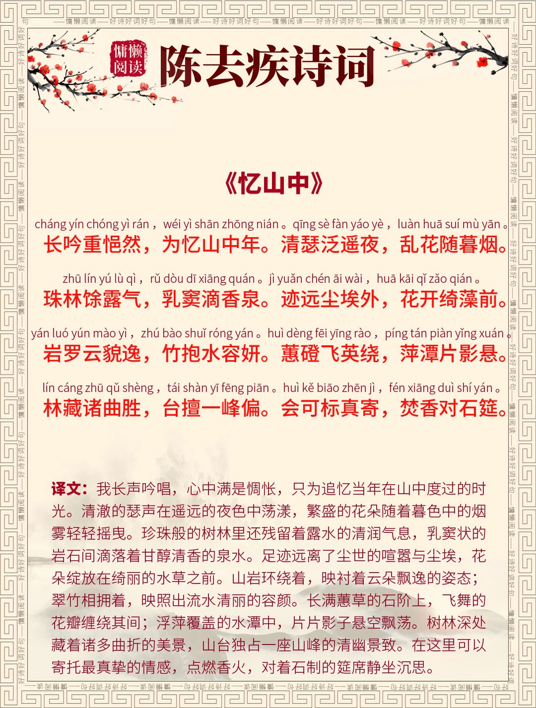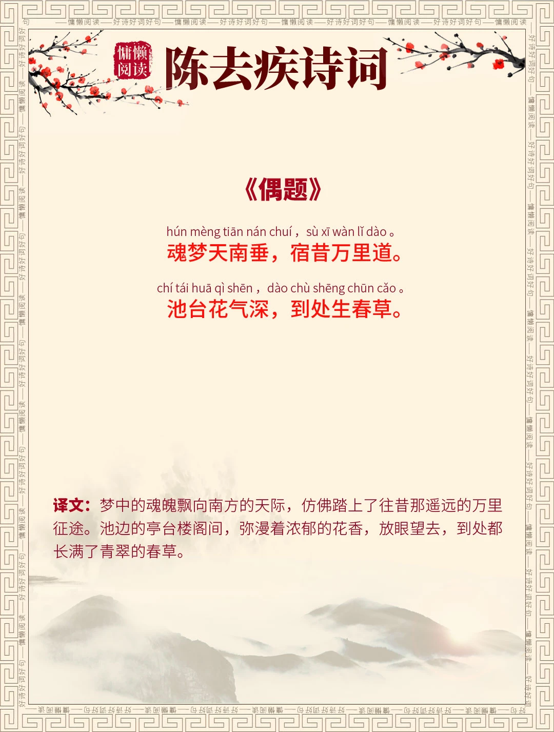 才子陈去疾13首传世诗作,每首带拼音+译文