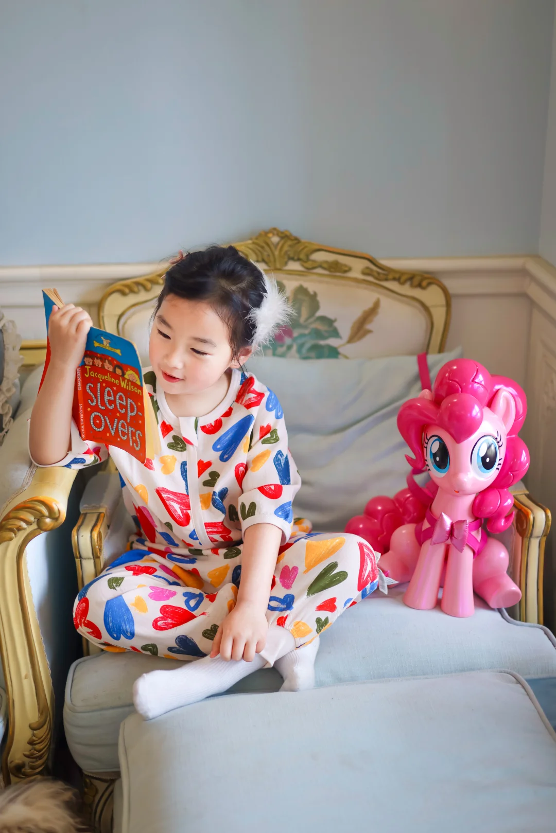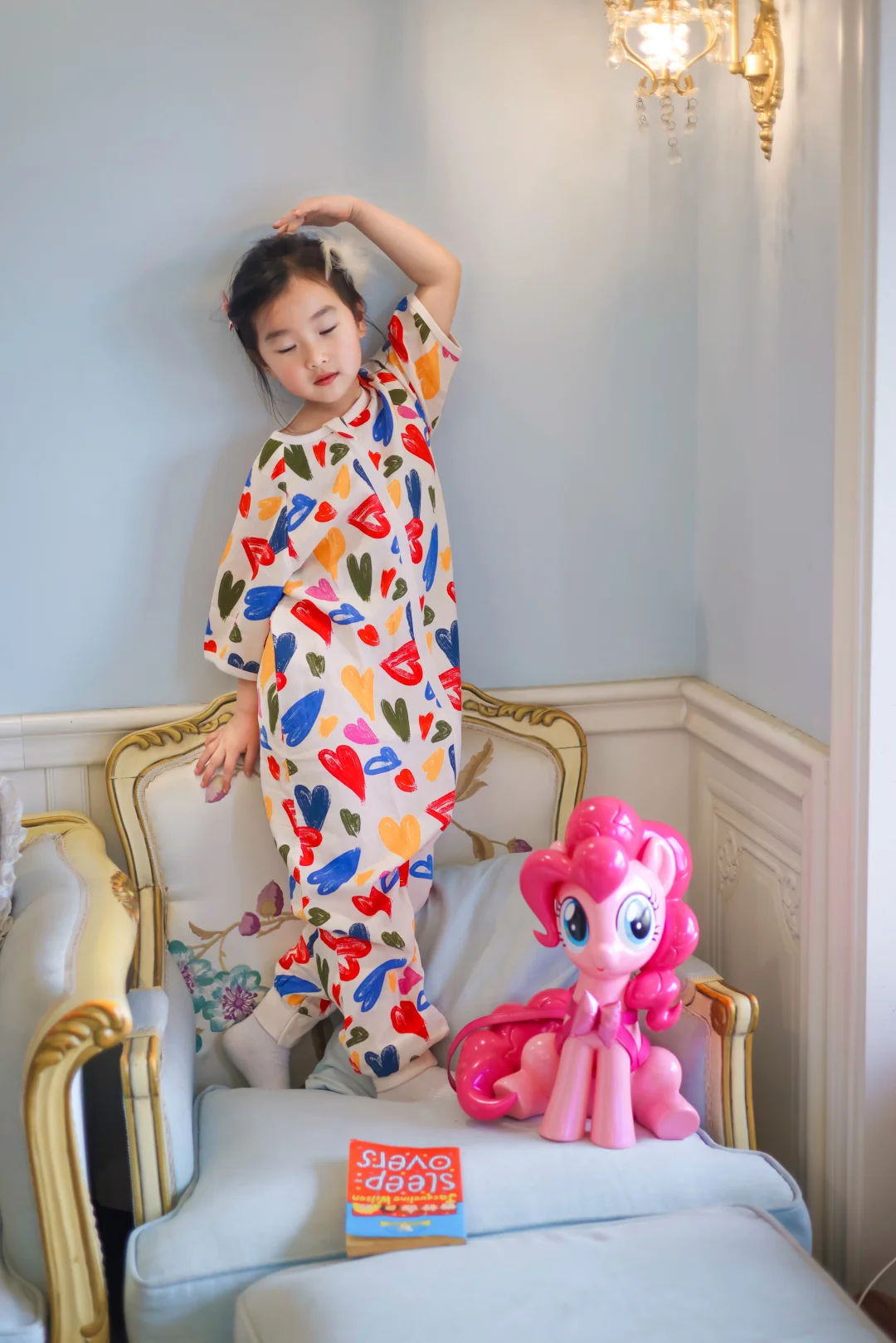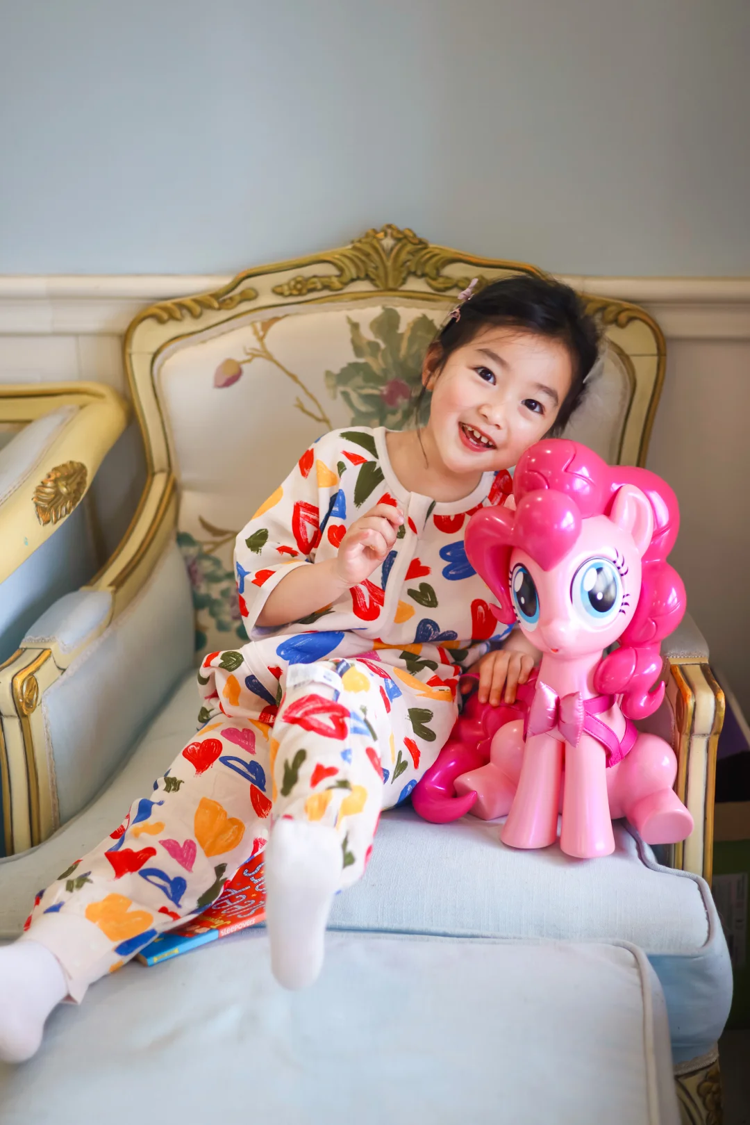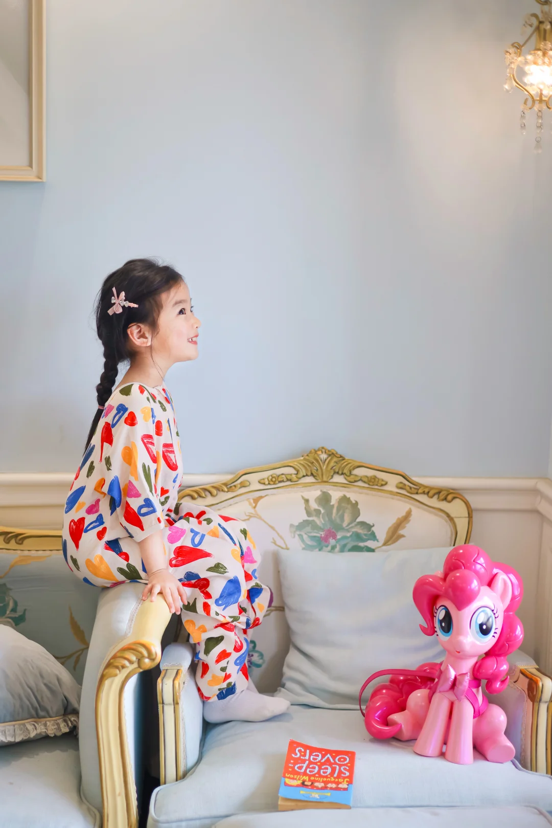 [集美R]而且它的花色是奥地利设计师联名款,可爱又元气,宽松版型不束缚娃,她玩闹、睡觉都自在。