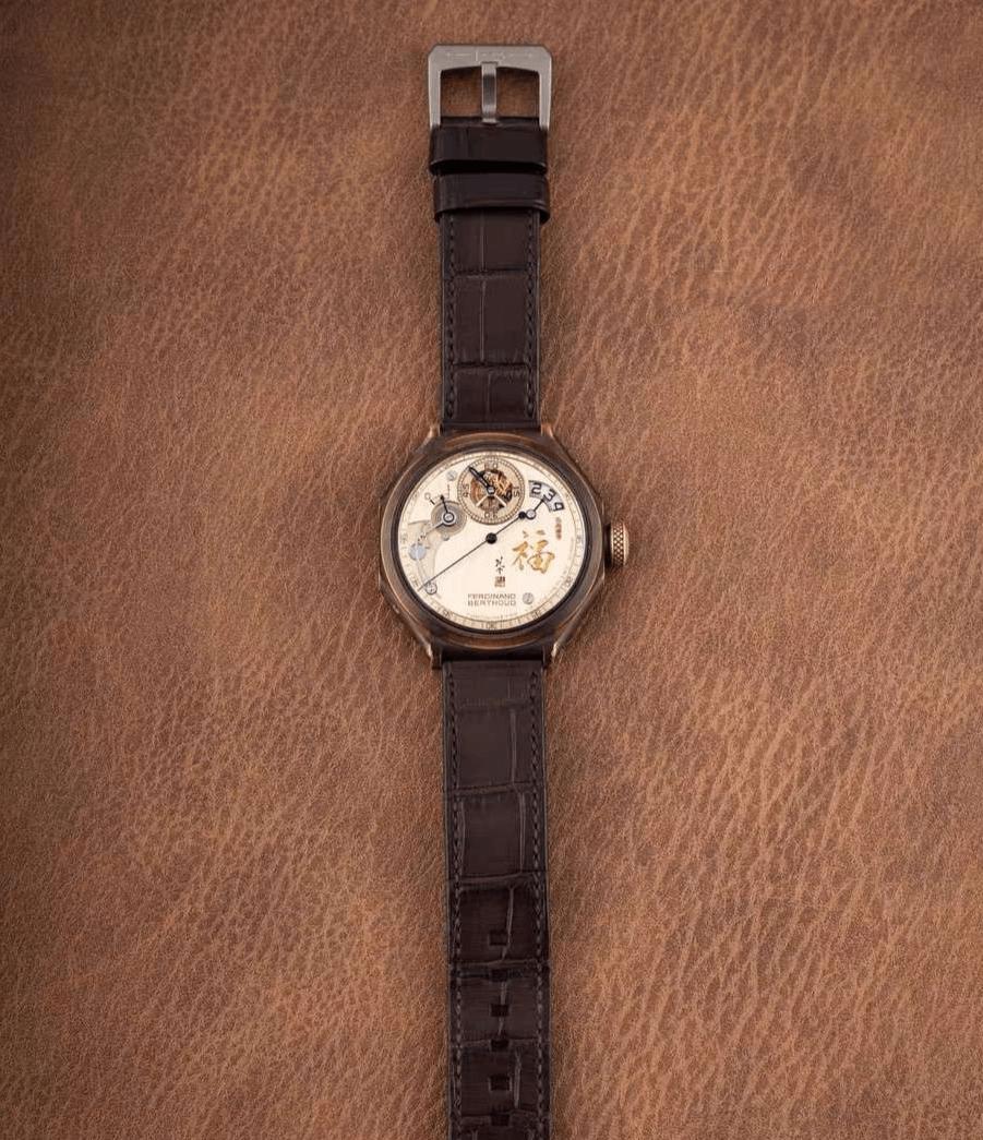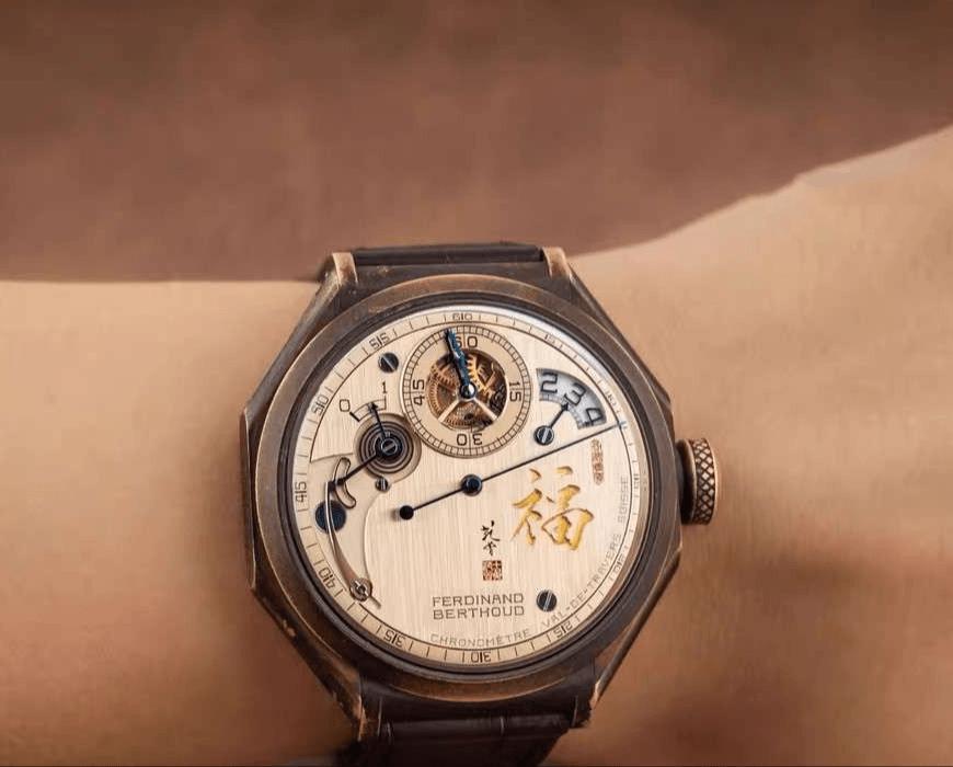 【国表风格 拍出三百万】近日又一只国风腕表在香港拍出三百万的高价,来自萧邦旗下高端制表品牌,费迪南德·贝尔,这个品牌擅长制作芝麻链腕表,是机芯设计大师,包含了直接驱动秒针的陀飞轮,能够拍出高价的主要原因是,与当代书画大家范曾合作,在4点位置题来了“福”字,并附有范曾落款,这样一只腕表仅此一只,收藏意义极强,同时感叹即便在名表领域,范曾依旧有超强影响力,这只腕表未来增值潜力无穷。您如何评价这只国风腕表?请留言评论二手腕表萧邦