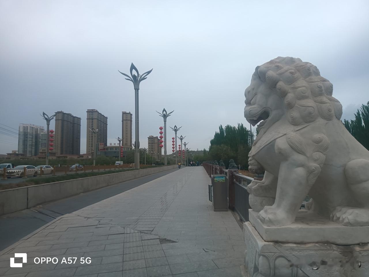 我们第一次近距离接触狮子桥是1991年三月,坐着托克逊来的大巴车一路颠簸过甘沟,越和硕滚石戈壁,翻过霍拉山余脉之后,眼前出现一座小桥(跟现在狮子桥比起来只能叫小桥),桥上两边栏杆上都是栩栩如生的石狮子,然后眺望,我们就看到库尔勒城了。
