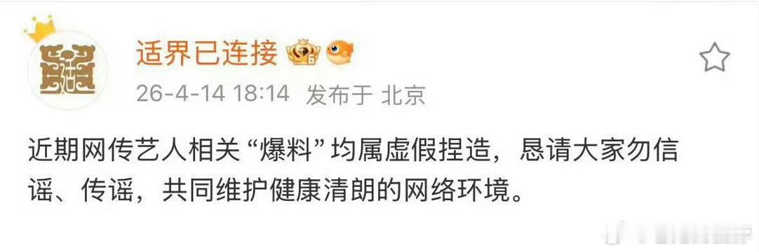 于适对接否认爆料于适对接回应:网传的所谓爆料均属虚假捏造 曝于适退团内幕