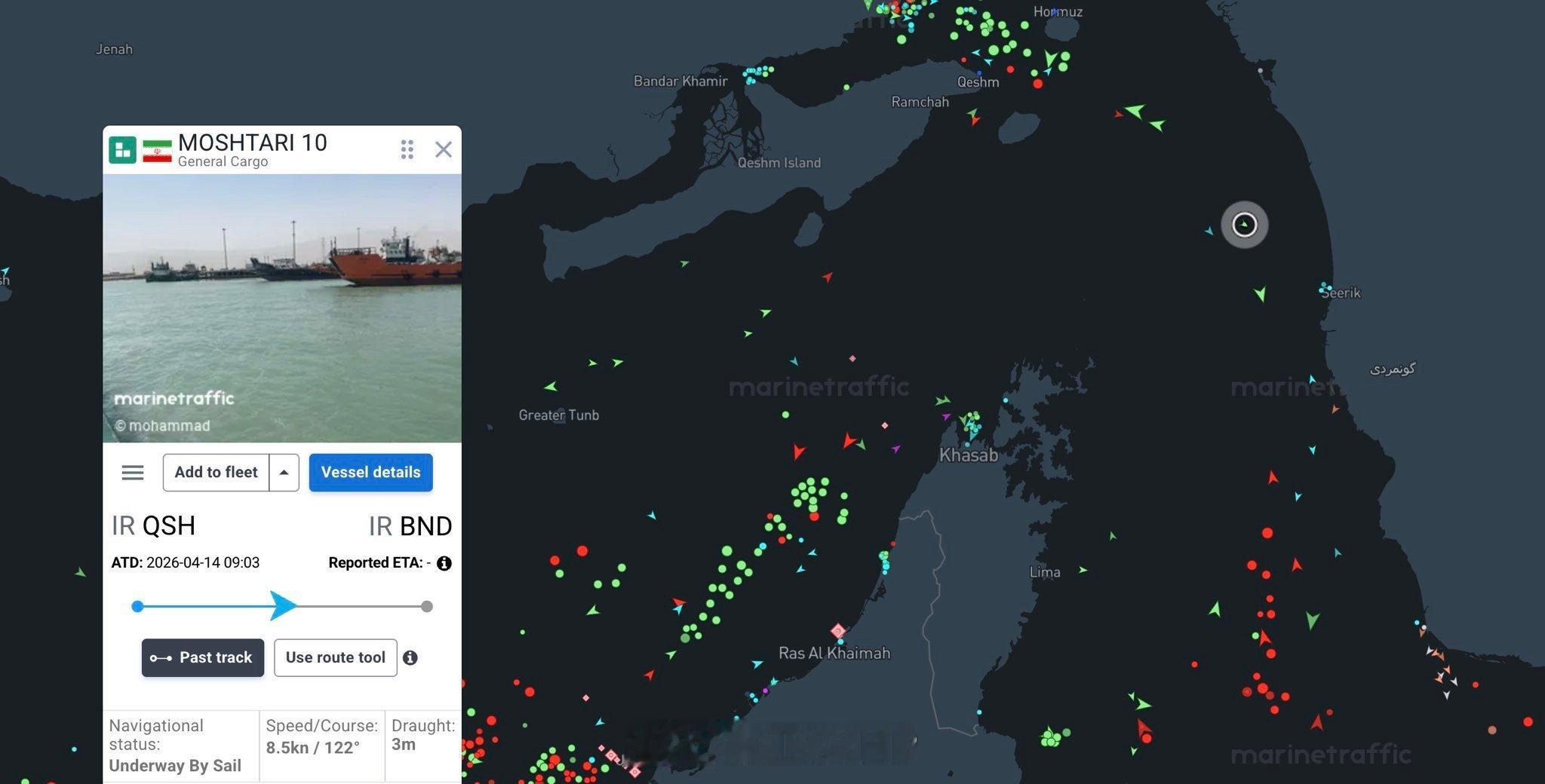 伊朗船舰穿越霍尔木兹海峡两艘伊朗船只无视美军封锁,穿越霍尔木兹海峡。