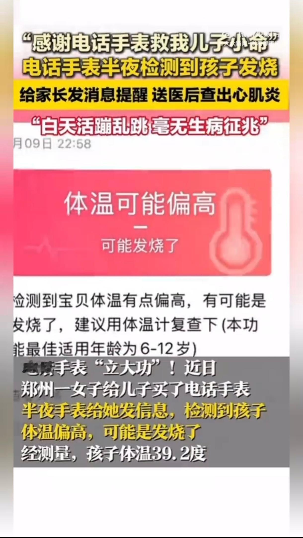 电话手表半夜发信息救下发烧娃妈妈回应电话手表救下心肌损伤儿子大人戴智能手表,图的是个“主动防御”。