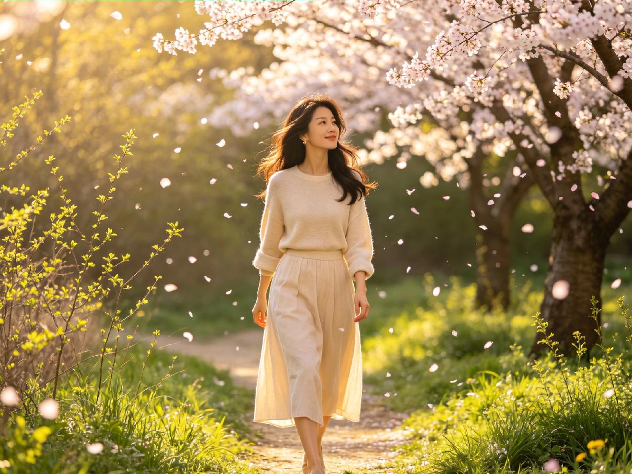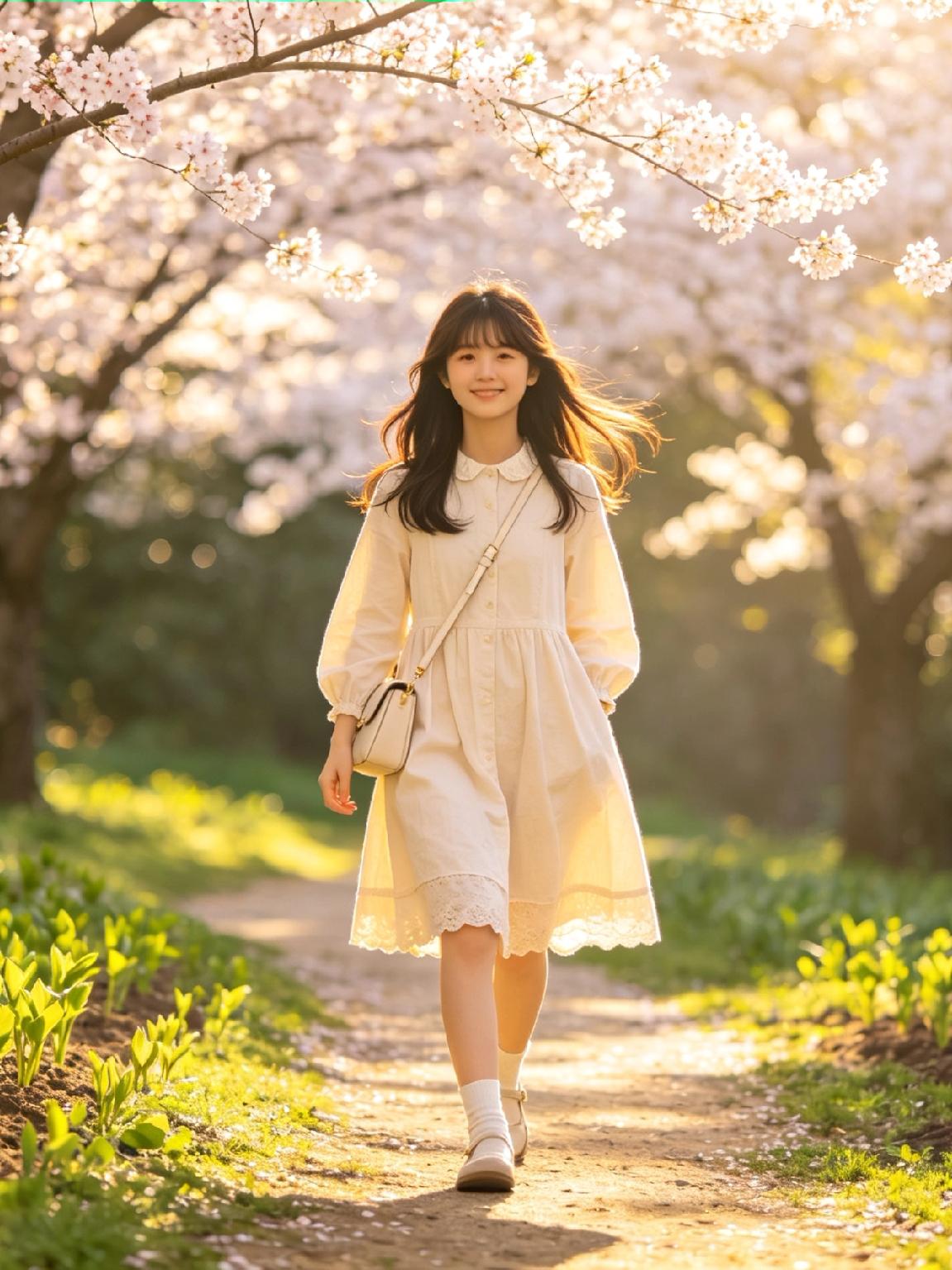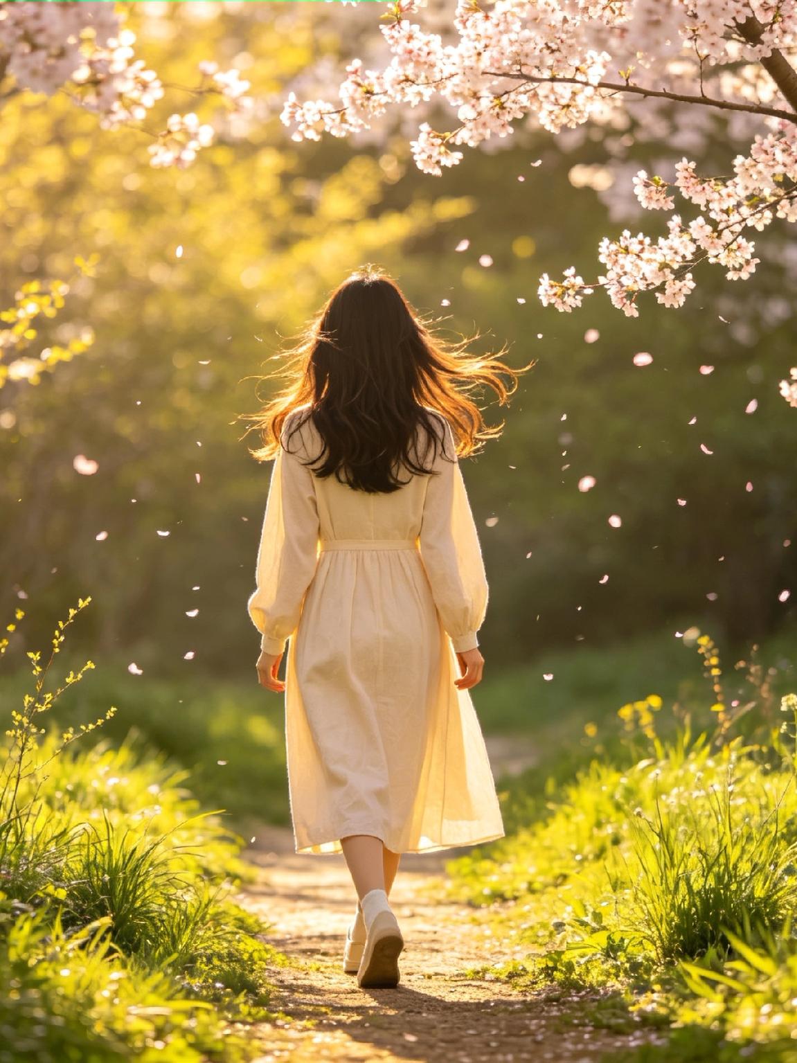 绿意盎然中,一位温婉的姑娘,宛如春日里的阳光。
