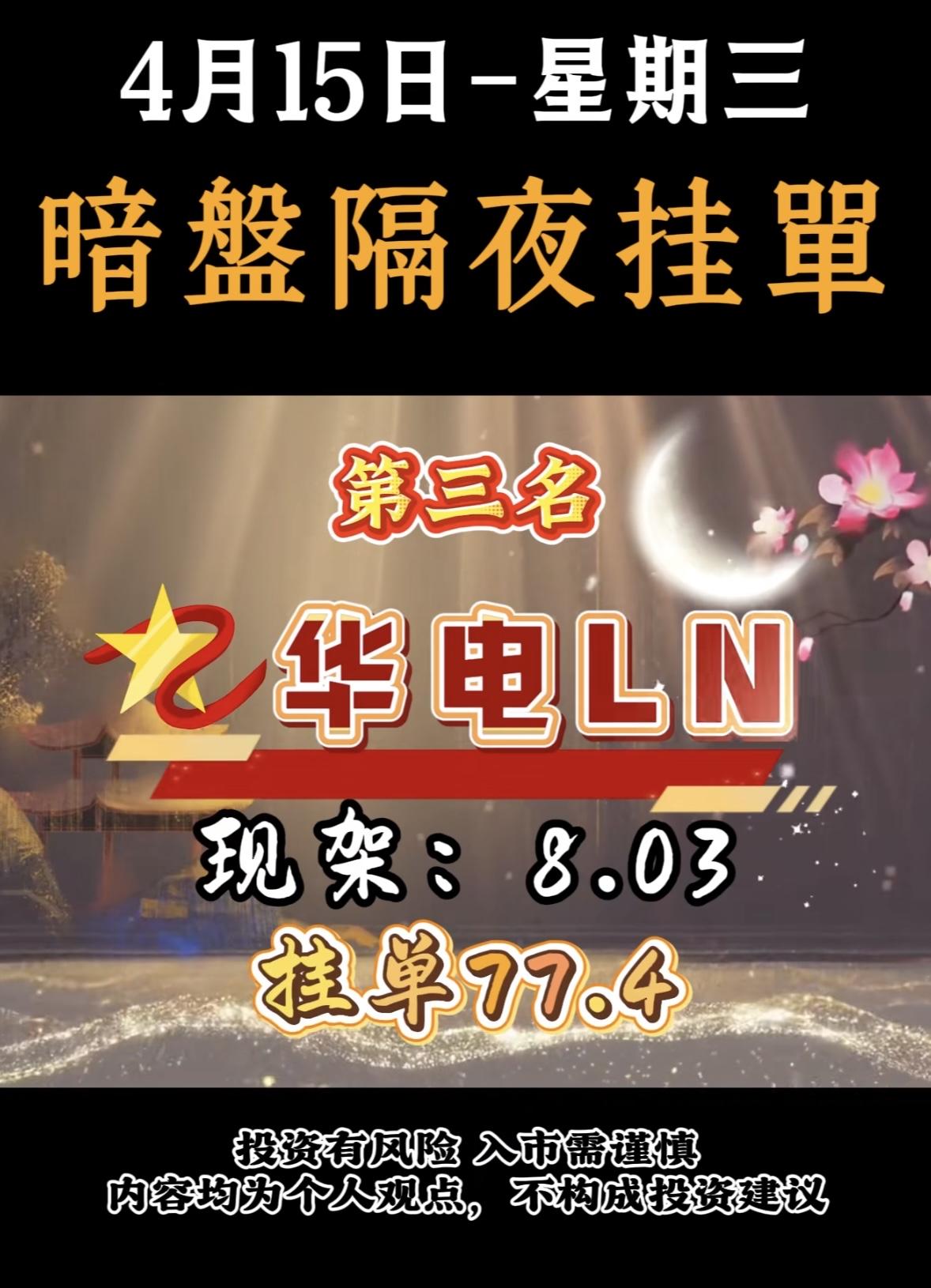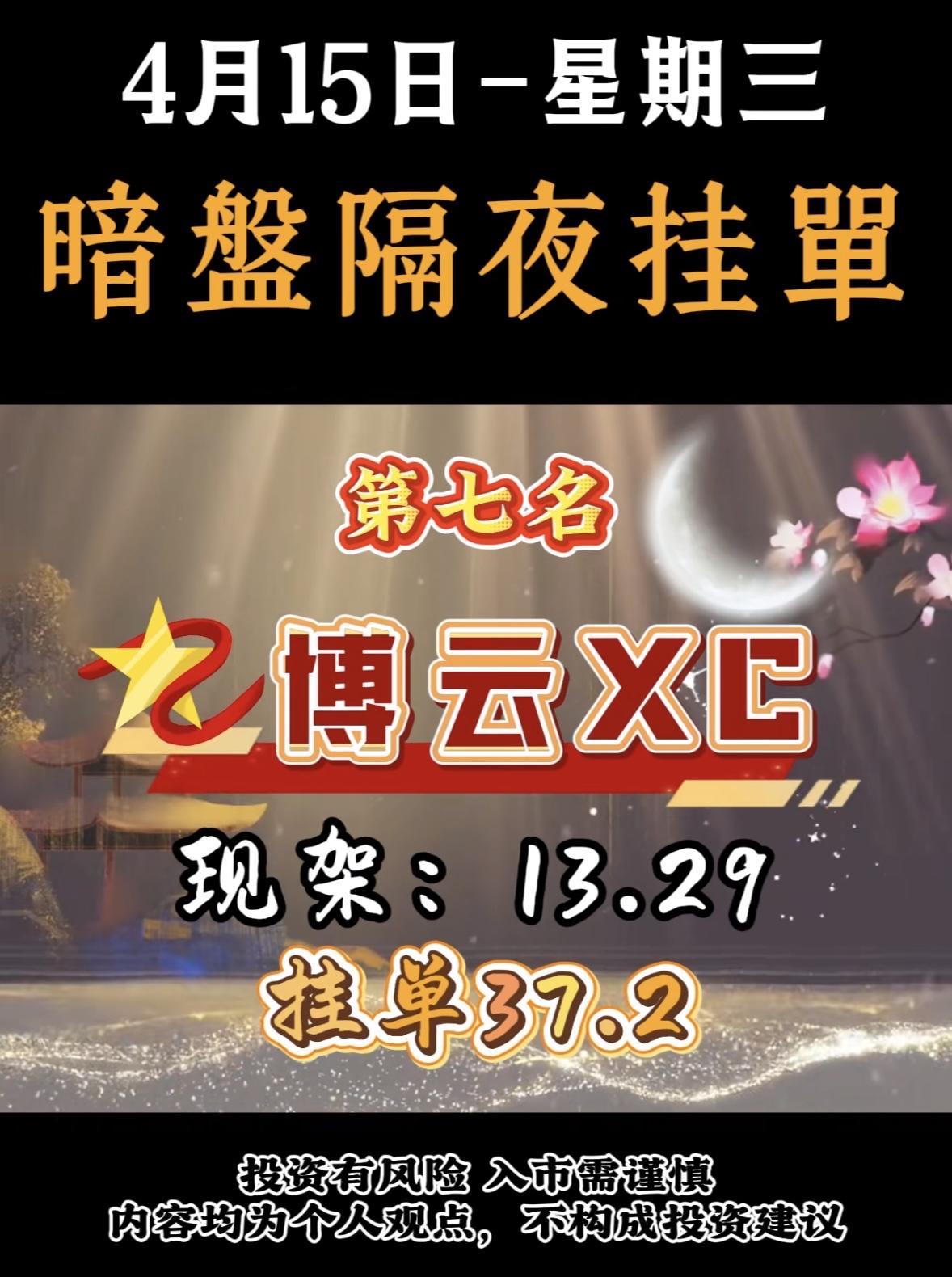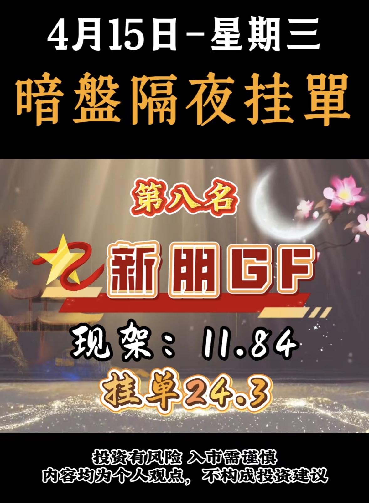 4月15日周三暗盘隔夜挂单排行榜揭晓 4月15日暗盘隔夜挂单,新朋股份这是要强