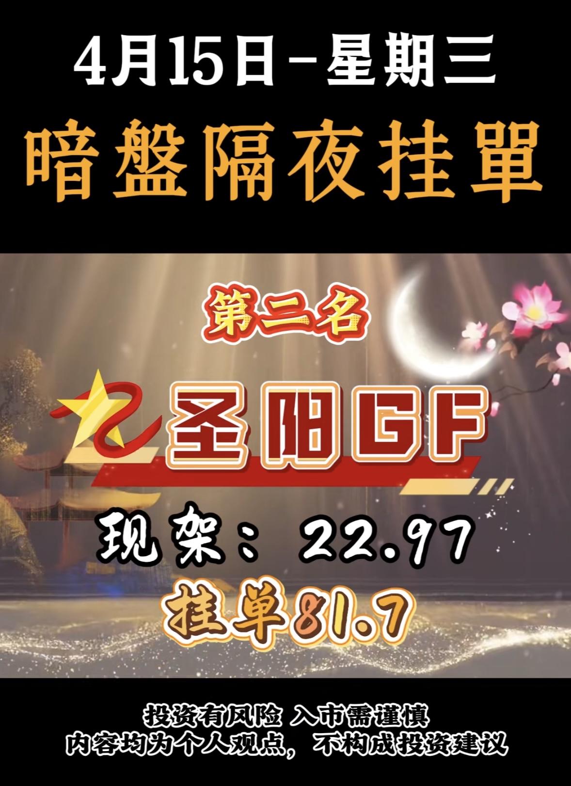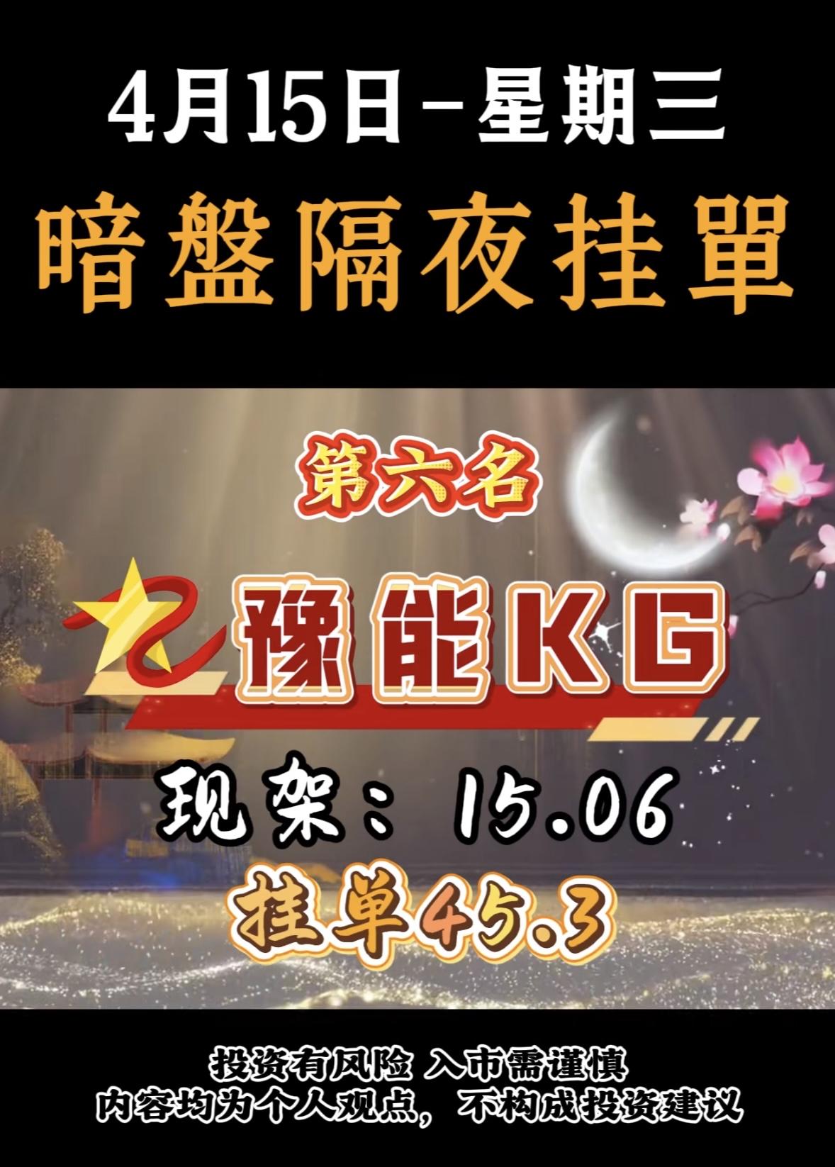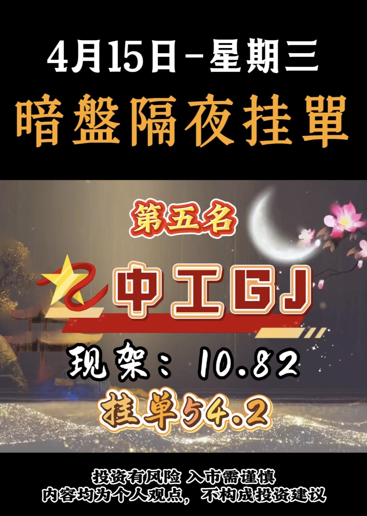 4月15日周三暗盘隔夜挂单排行榜揭晓 4月15日暗盘隔夜挂单,新朋股份这是要强