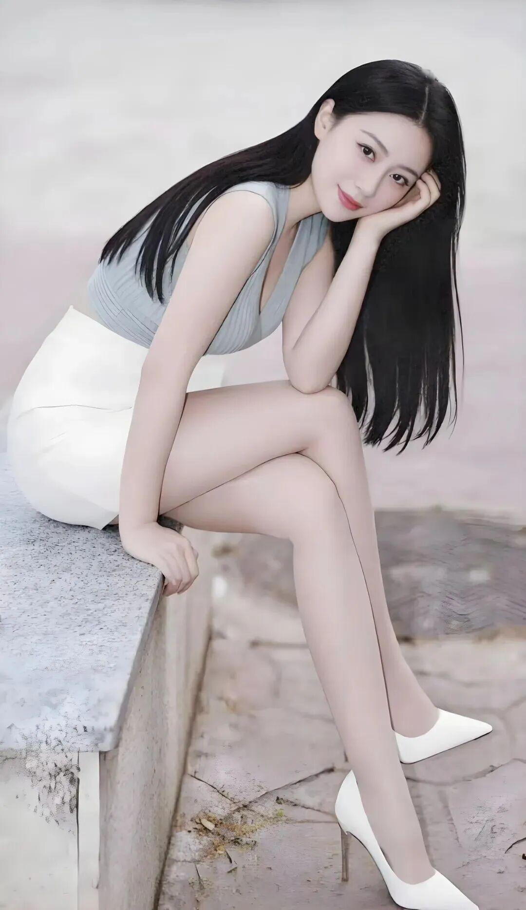穿搭简约又精致:浅灰蓝褶皱深V无袖上衣,细腻竖纹面料温柔有质感,修身版型勾勒曼妙线条;搭配利落高腰白色包臀短裙,干净清爽又利落,高腰设计完美拉长腿部线条;脚上一双简约白色尖头细跟高跟鞋,衬得双腿纤细修长、比例优越。