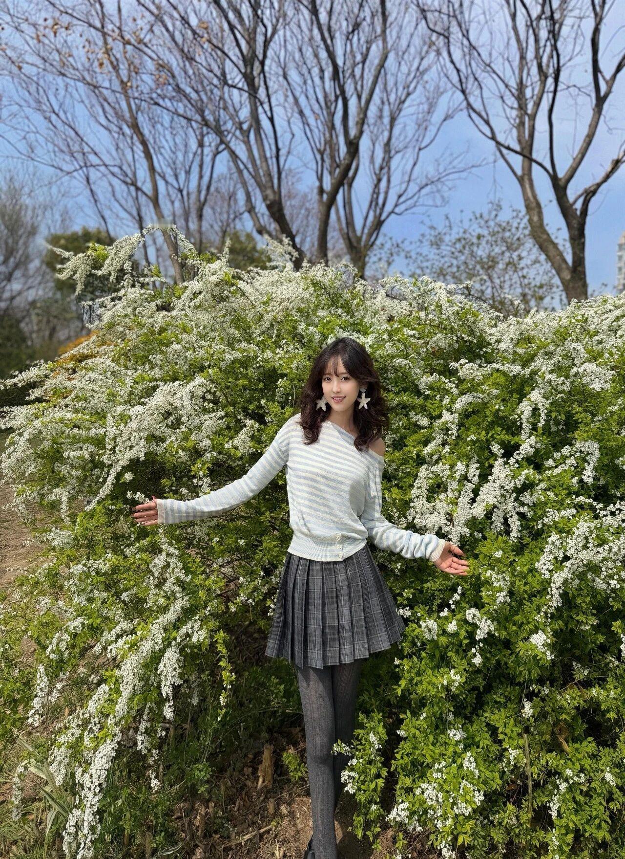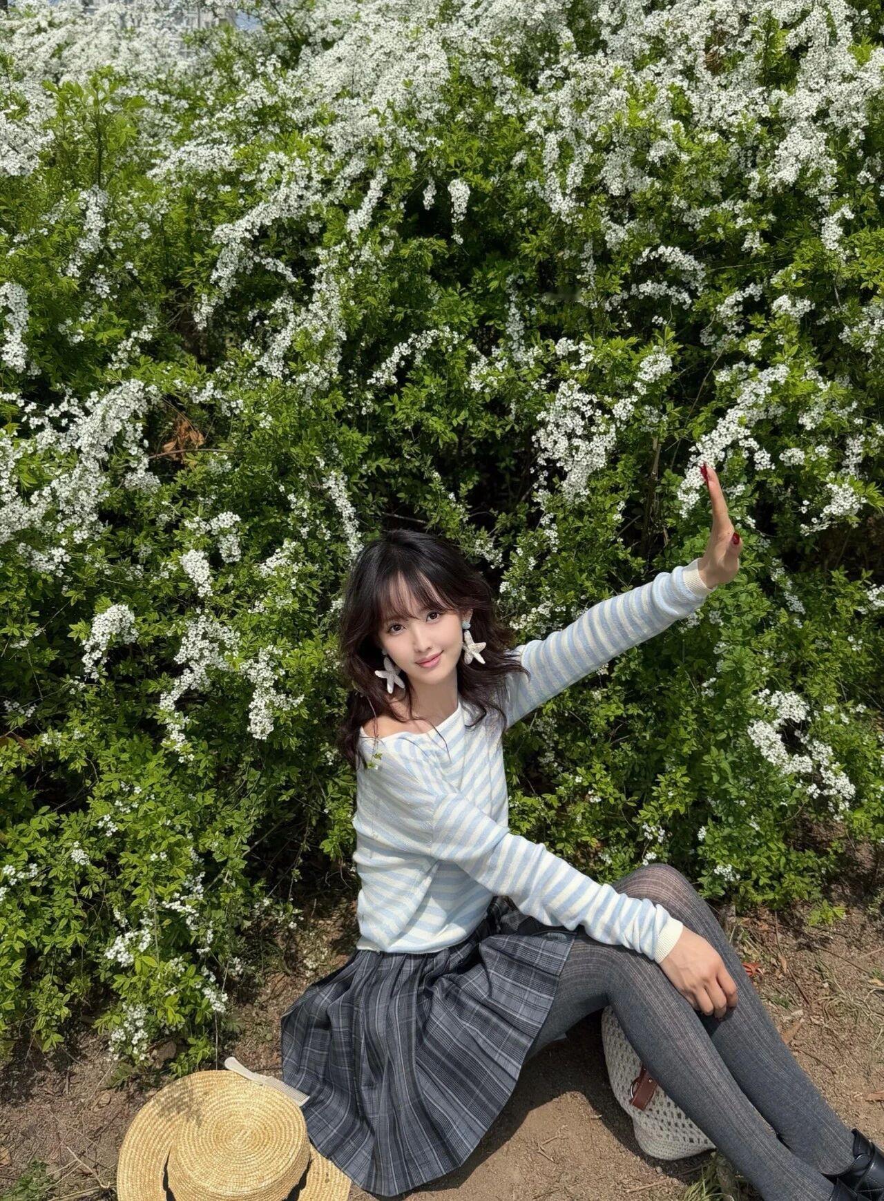 置身开满雪白碎花的春日户外,晴朗蓝天、葱郁绿植氛围感拉满。或是站立倚靠、或是席地而坐,姿态灵动松弛,清爽韩系穿搭和春日花海完美相融,清甜元气、温柔灵动,满满治愈系春日氛围感。