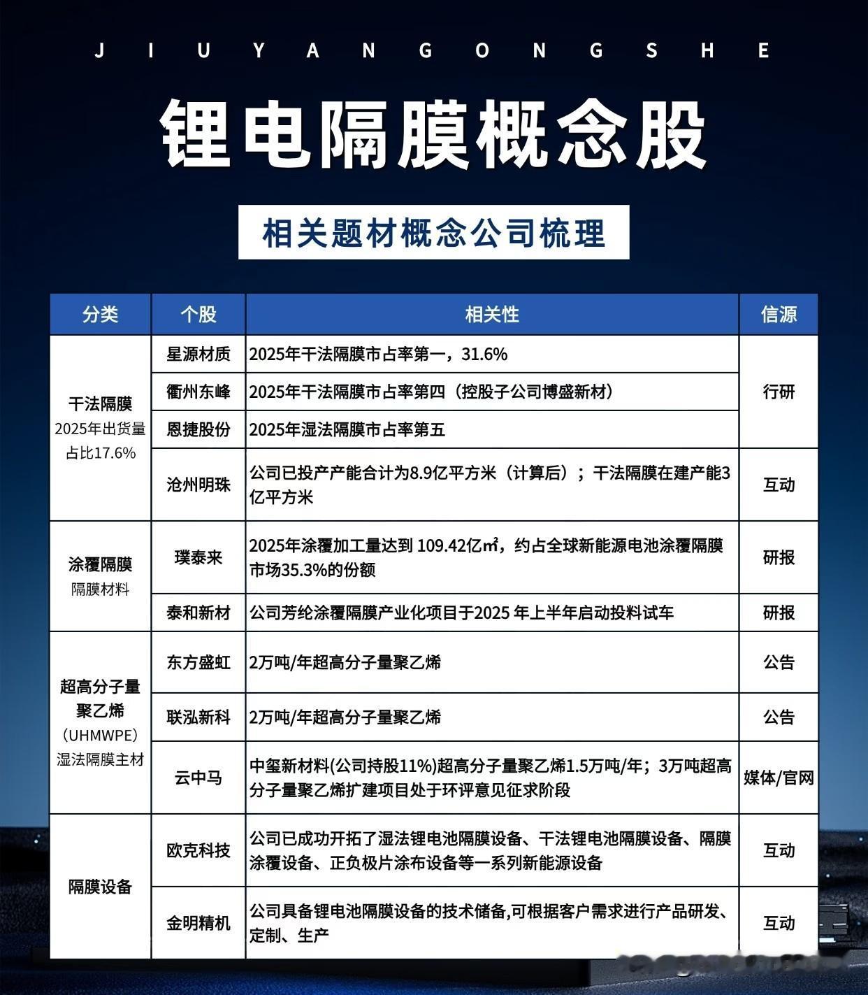 3. 干法隔膜(占比17.6%):星源材质以31.6%市占率位居第一,核心壁垒在于适配储能、两轮车等细分场景的技术适配性。