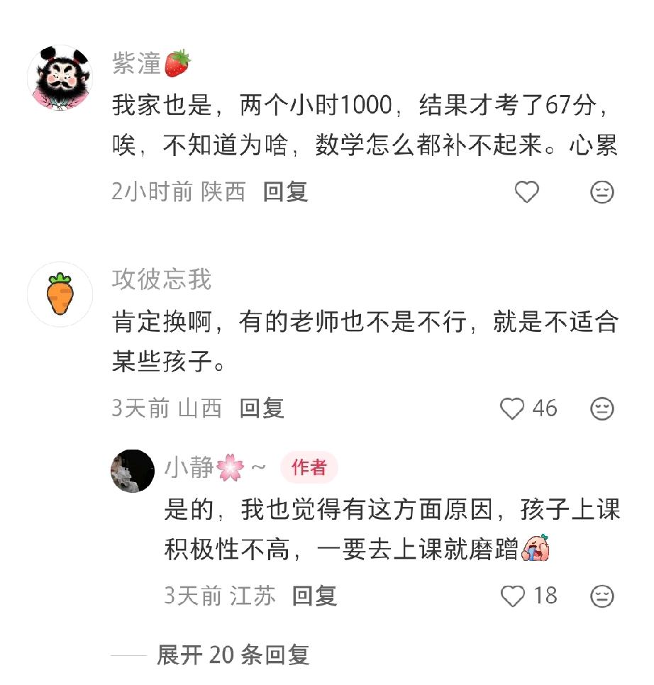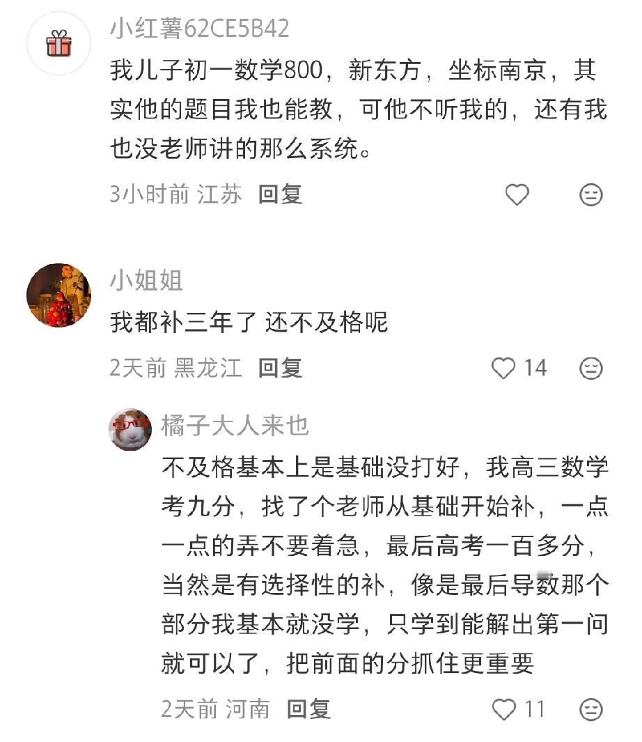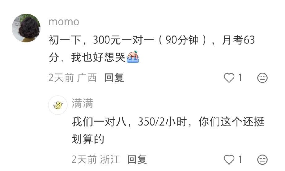 现在有一些家长,花费巨额费用,让孩子去补课。一个妈妈急得不知道怎么办:“闺女初二了,月考数学才考了73分,天塌了,老母亲花六七百一个小时给她补一对一,结果补出这鬼成绩。”