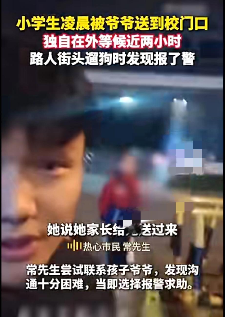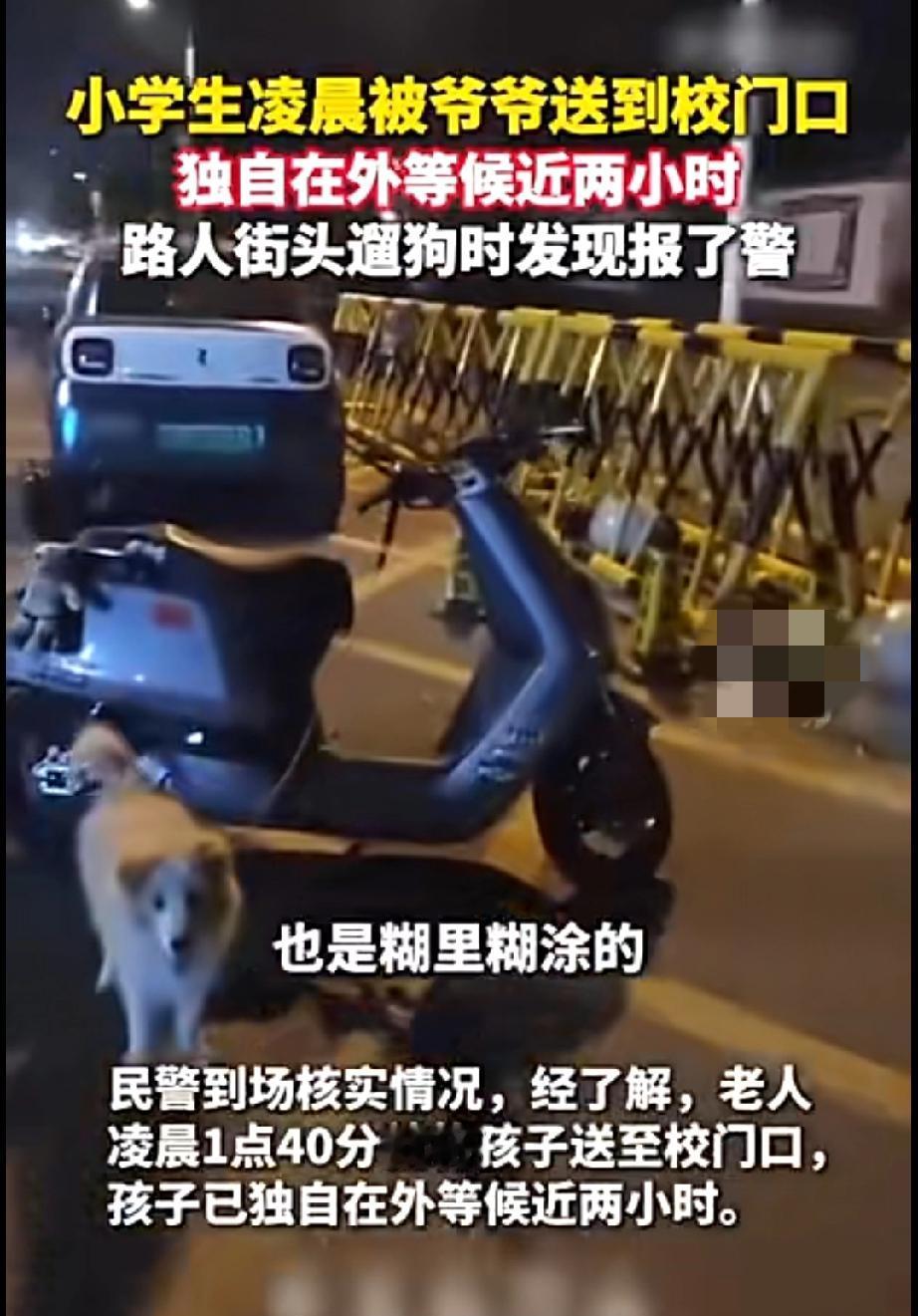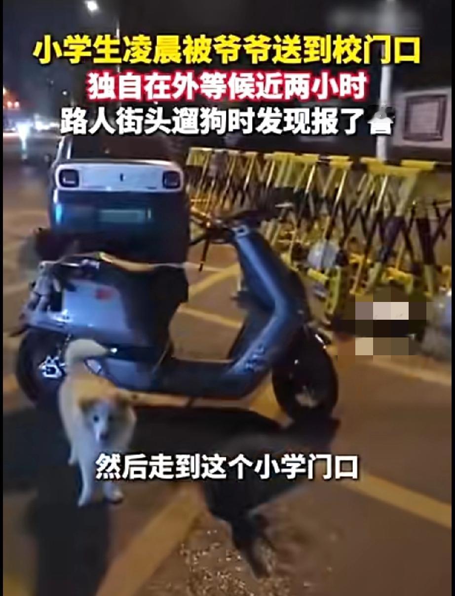 据网友爆料,3月30日,河南洛阳,一个七八岁小女孩半夜1:40被爷爷送到学校门口,等着上学。爷爷转身离开回家,小女孩硬是在深更半夜站着等了近两个小时。