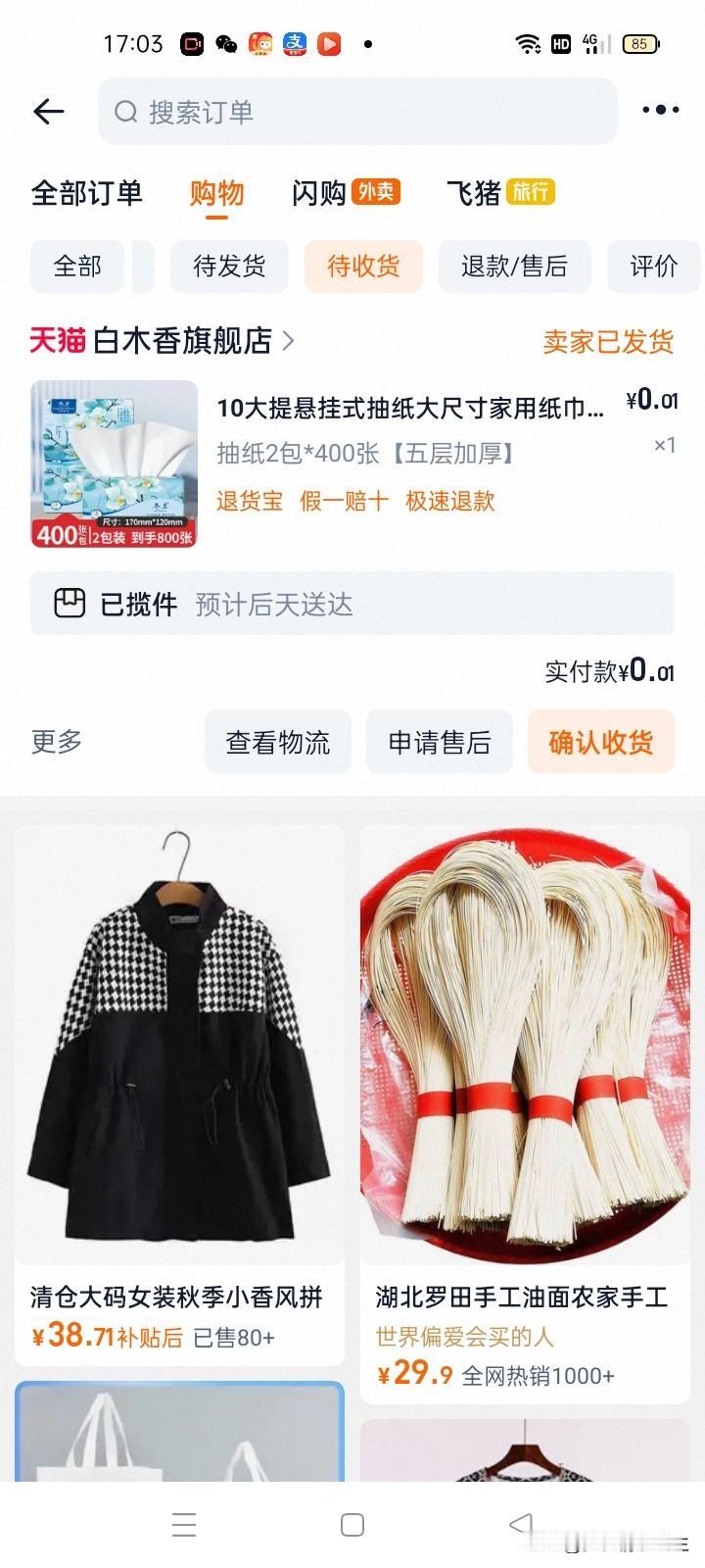 回家后去捡了两捆柴,在问卷调查里面赚了340积分相当于3.4元,在悟空浏览器里面提现3元,在抖音里面看广告跳转到淘宝1分钱撸两包抽纸,我去年屯了好多抽纸,都是一分钱零元撸到的,小钱也是钱,大钱都是由小钱聚集起来的。大家说是不是欢迎留言评论!