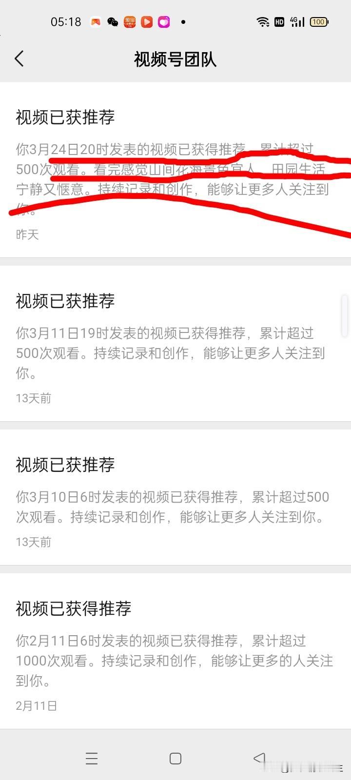 昨天我拍的视频号被视频号团队推荐了,说是看完感觉山间花海景色宜人,田园生活宁静又惬意,持续创作会有更多人关注你。