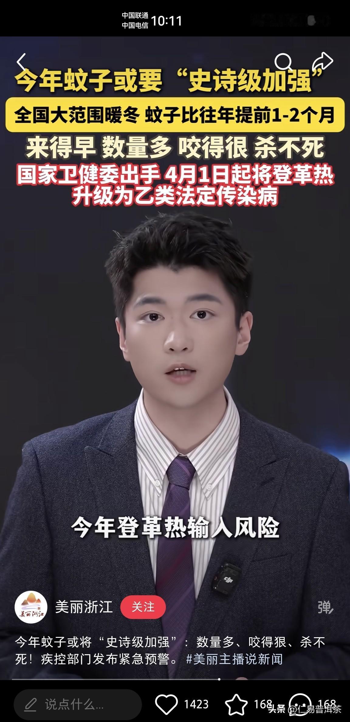 2026年4月11日,吃完早饭拿着手机,漫无目的地打开小红书刷了刷主播,又点开今日头条看新闻,突然一条消息映入眼帘:登革热正式升为乙类传染病。