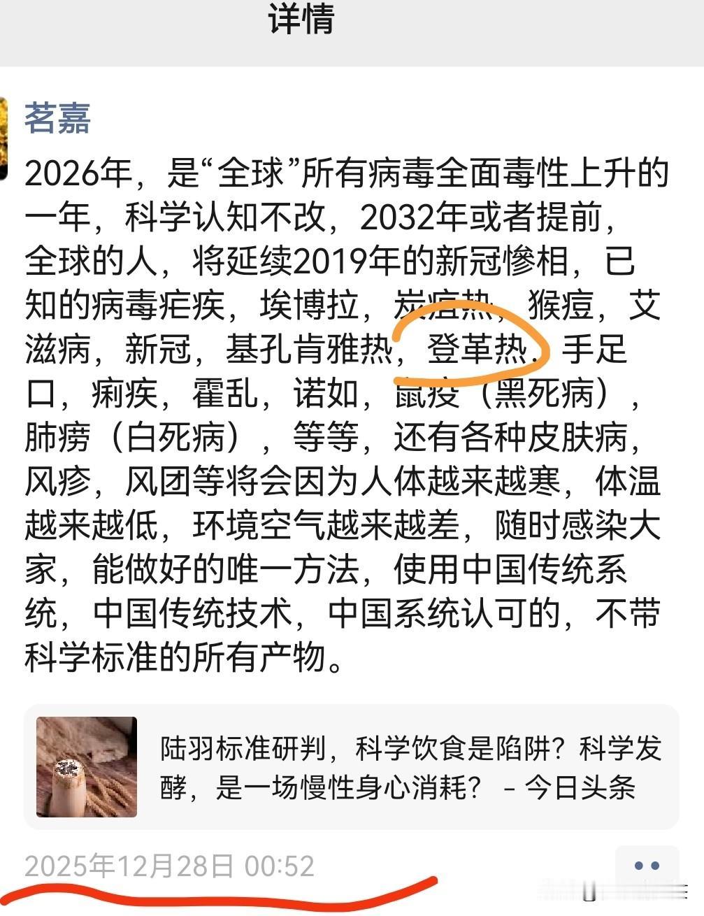 同频的老朋友应该都记得,去年12月底,我就基于这套深耕了十几年的体系,做过完整的趋势推演,当时明确提到了2026年病毒升级的相关判断,登革热的防控等级调整也在其中。那时候很多人看不懂,甚至觉得是小题大做,现在才过去三个多月,官方发布的实锤就明明白白摆在了眼前。