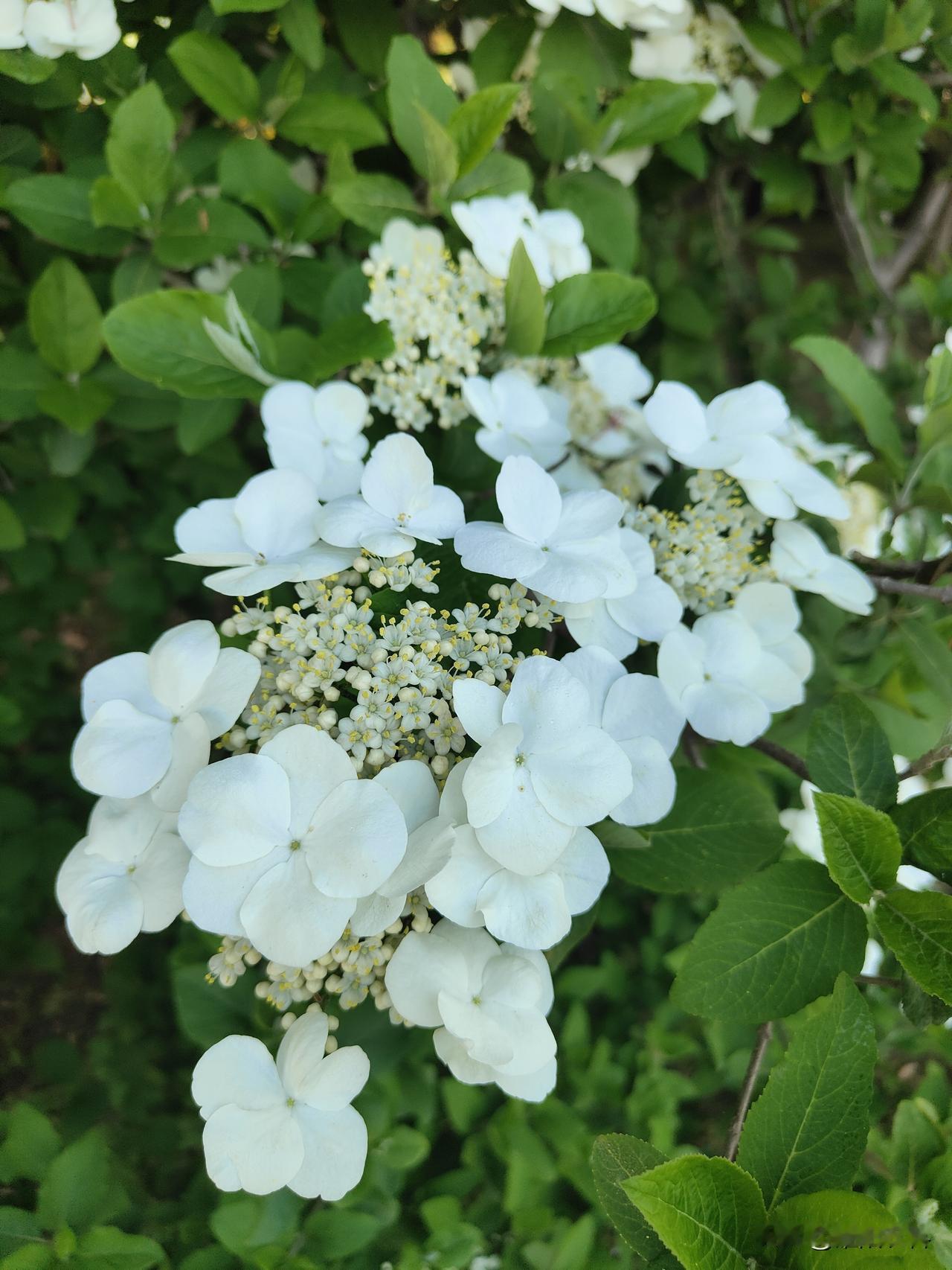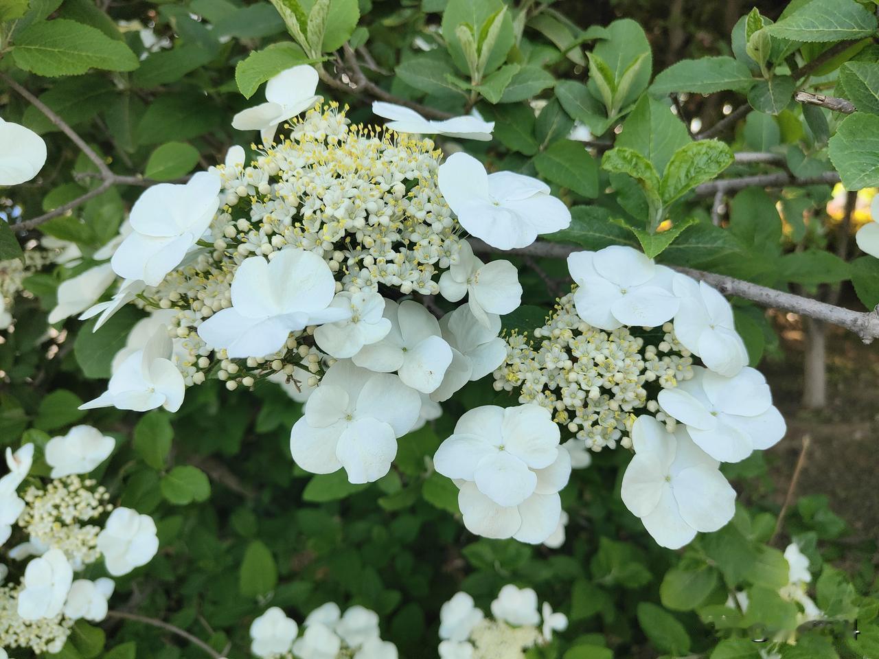 晒图笔记大赛琼花进入盛花期,周围盛开的花,像一个个白色的蝴蝶在翩翩起舞,中间碎小的白花像星星一样点缀其中。