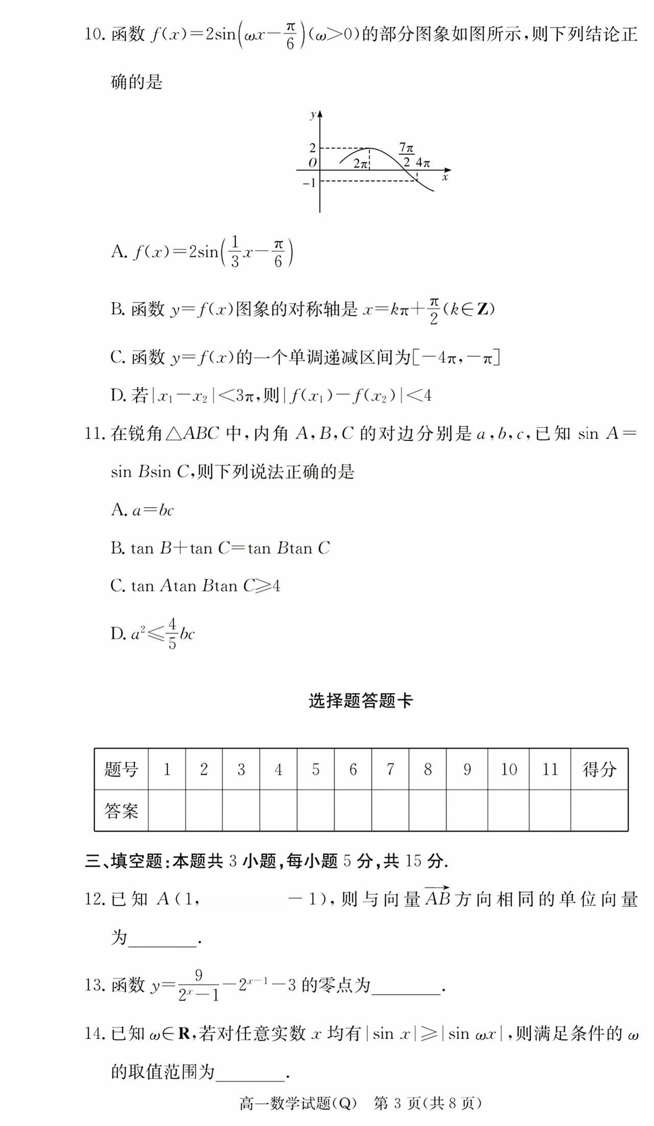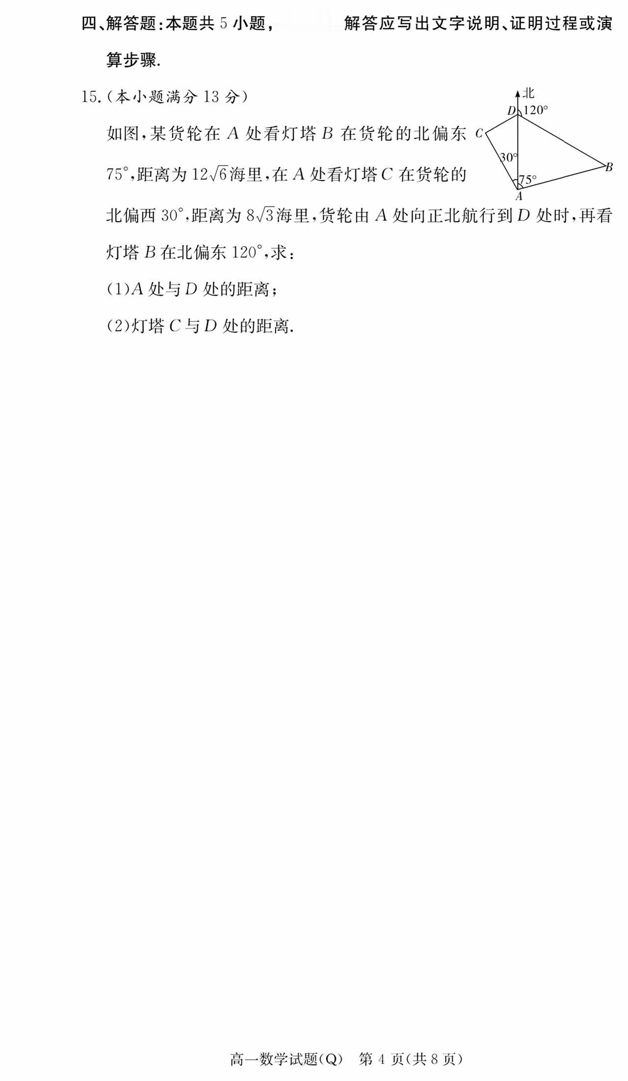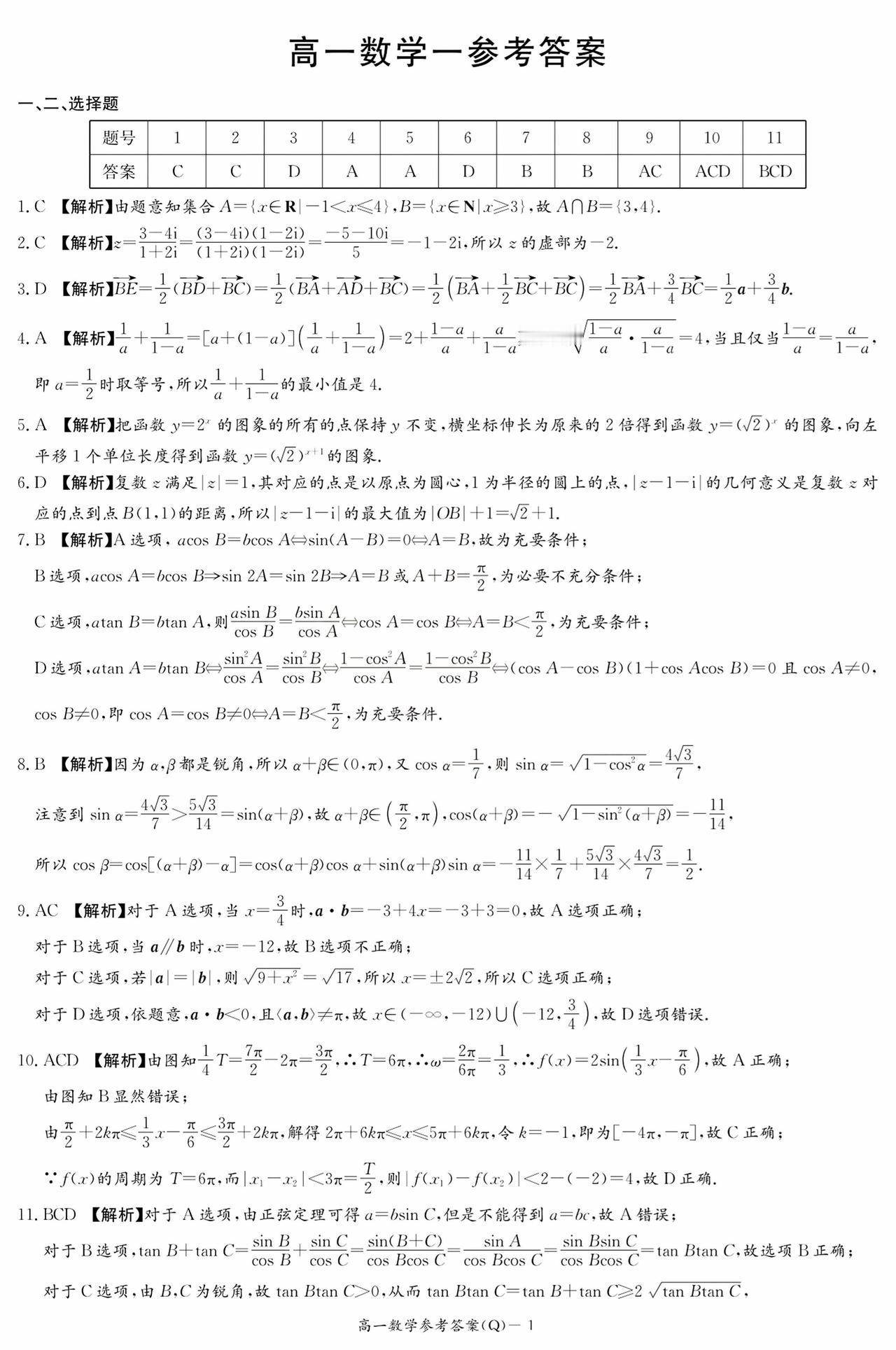 长沙市一中2026年上学期高一4月阶段检测数学试题及答案
