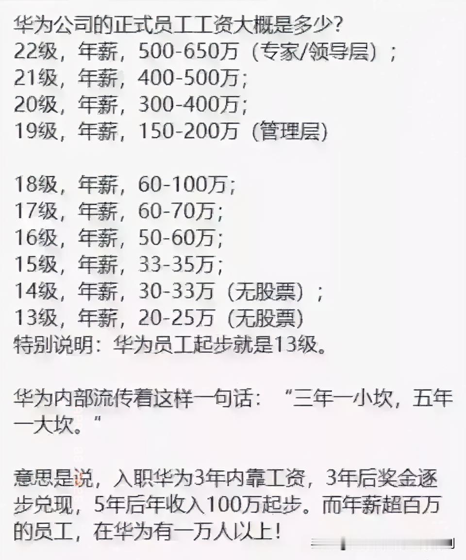 2026年华为校招年薪20万起,华为员工起步13级待遇,13到18级是华为大部分