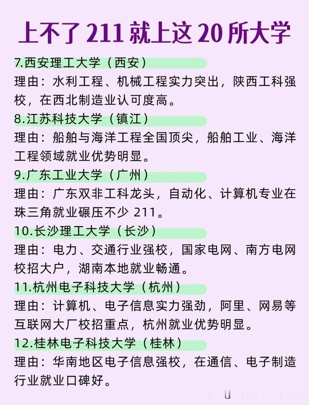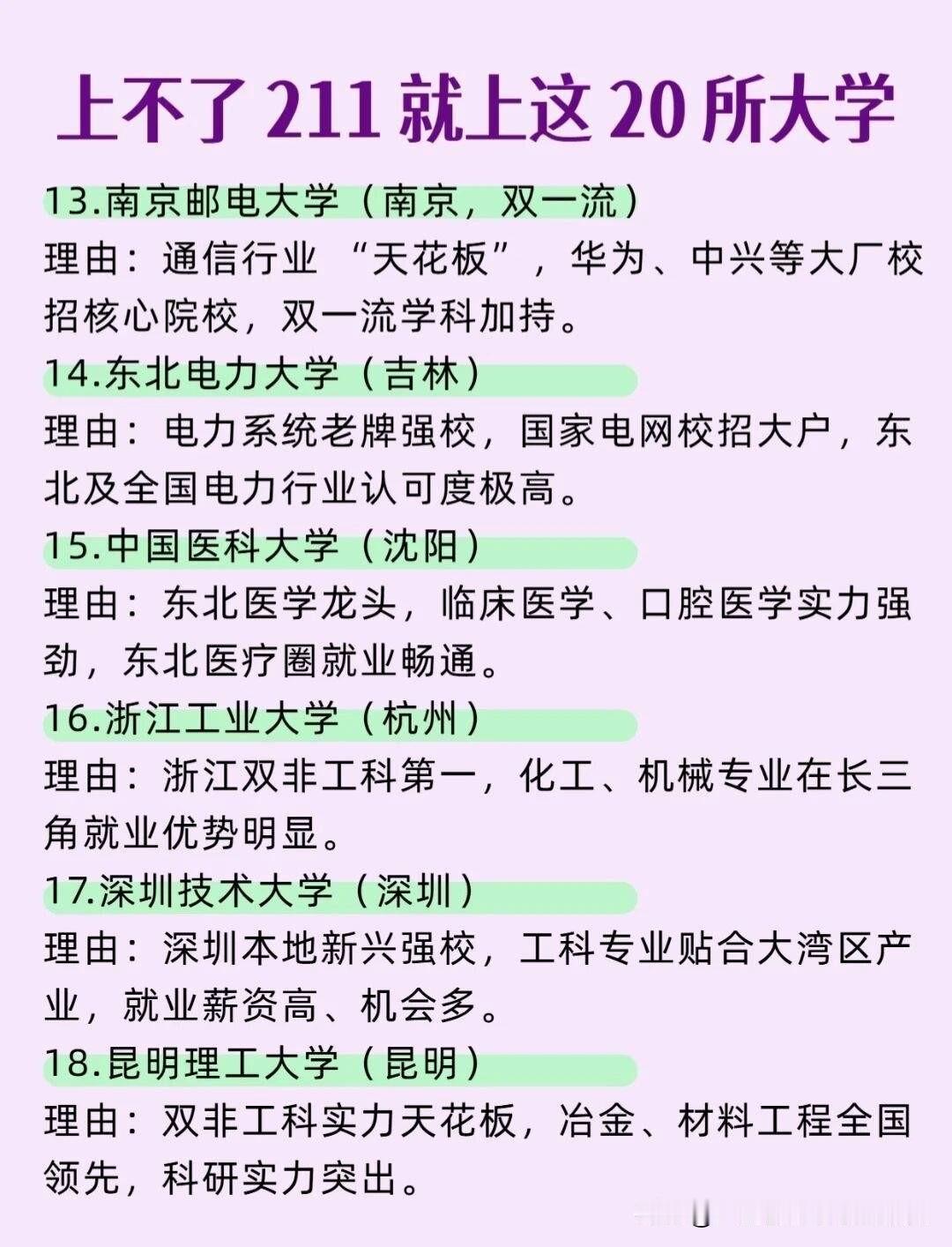 上 985、211 大学确实有点难,不过有 20 所大学值得关注。这些大学虽然可能不是传统意义上大家熟知的 211,但实力不容小觑。