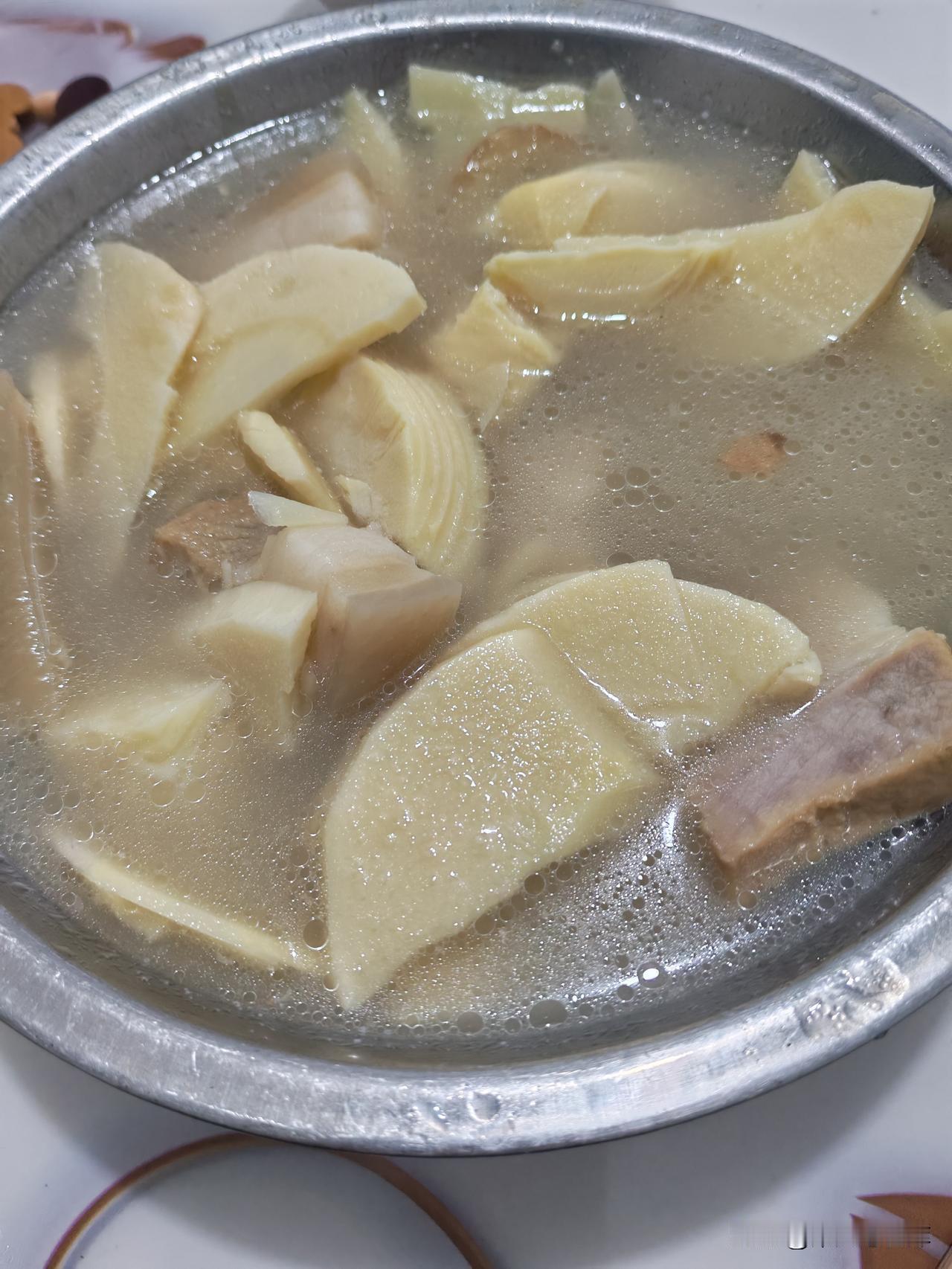 大妈留我晚饭18个馄饨,还饨煮了毛笋咸肉汤。