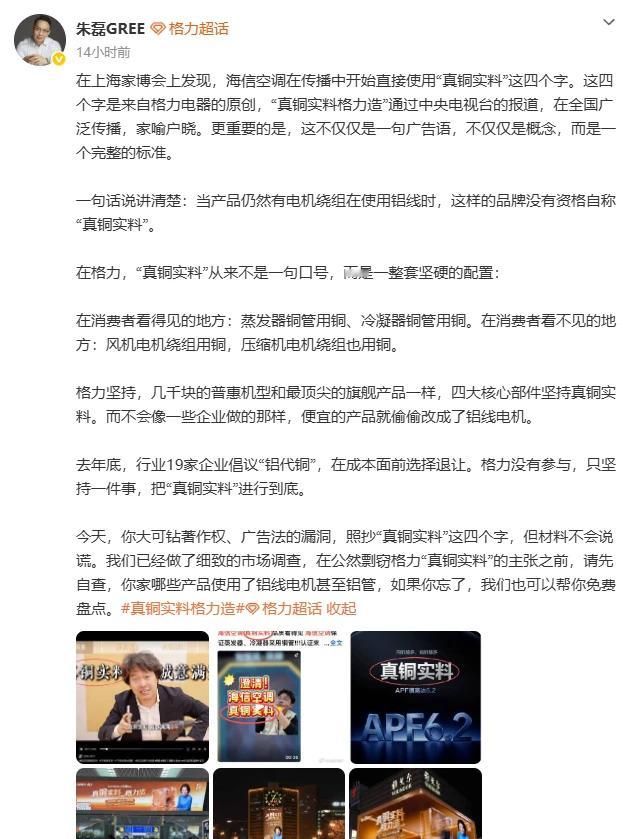 格力高管批海信空调抄袭 抄袭本来就不光彩还涉嫌虚假宣传,这波操作确实有点翻车了。