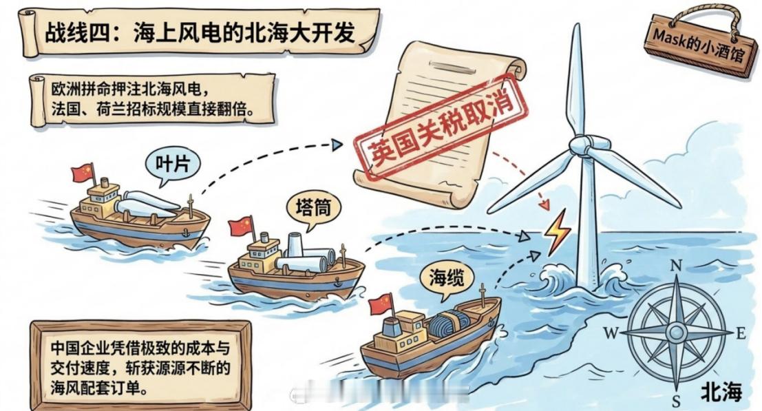 甚至海上风电也跟着猛冲。欧洲现在最拼的赛道之一就是北海海上风电。英国取消相关关税,德国砸下巨资,荷兰、法国把招标规模翻倍。中国企业在成本和交付速度上优势明显,叶片、塔筒、海缆等环节订单源源不断。